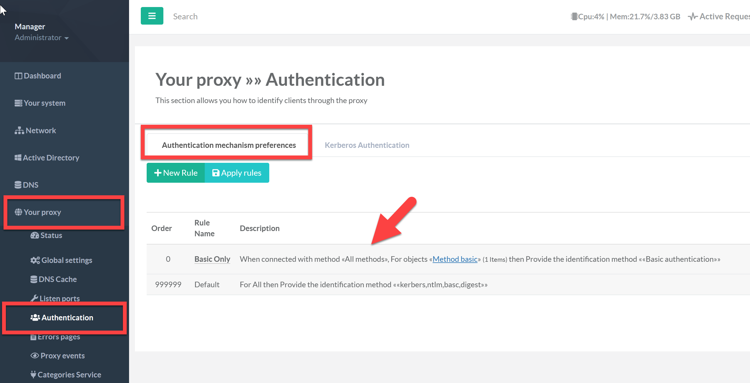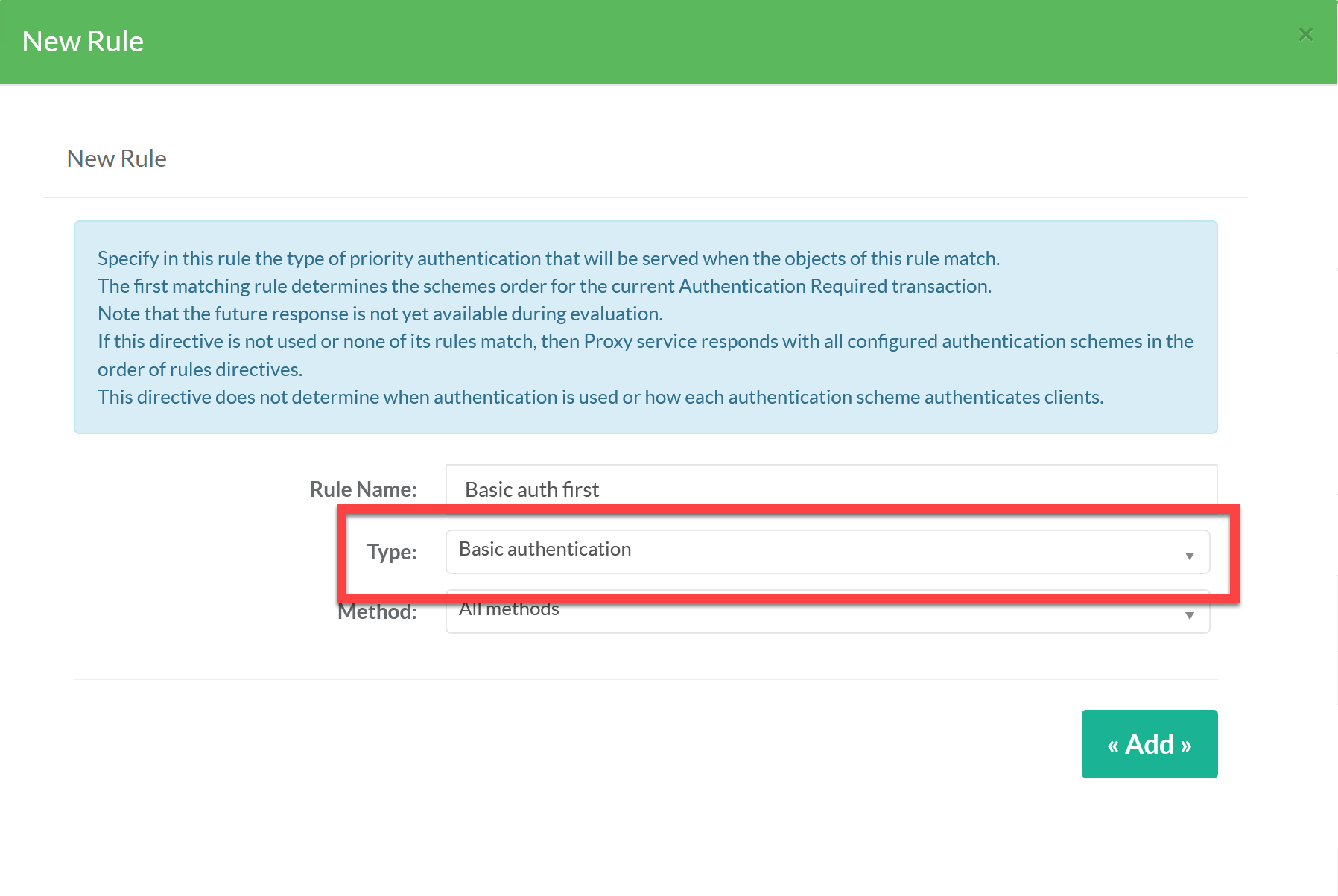 When you add a rule, you specify the type of priority authentication that will be served when the objects of this rule match.