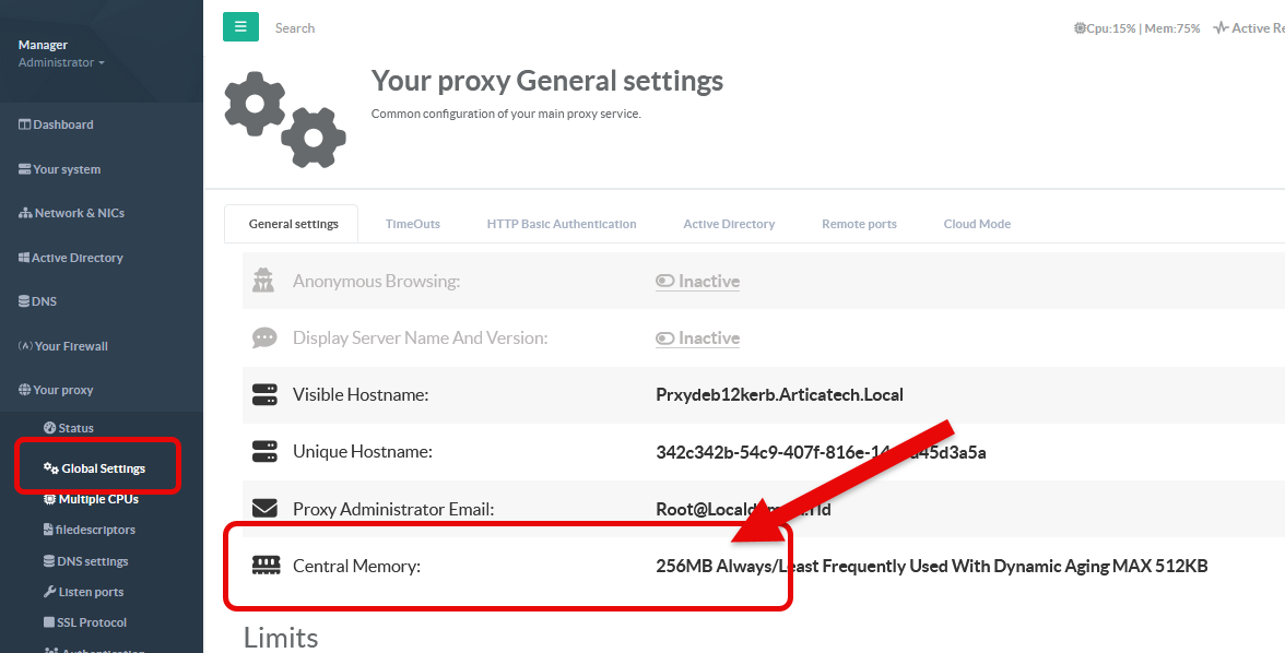This memory storage, called 'Memory Cache', allows the proxy (only for HTTP protocol) to save certain elements.