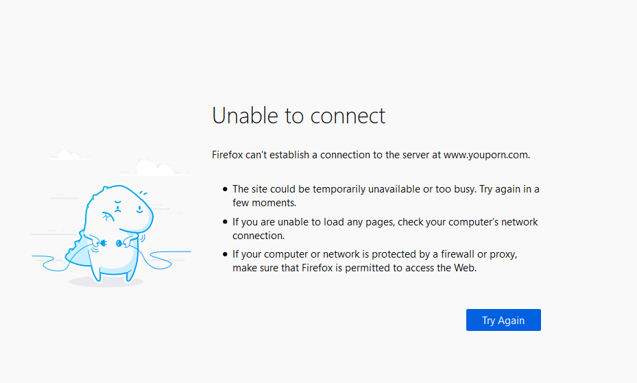 Usually this browser page mentions connection failure or other such irrelevant details.