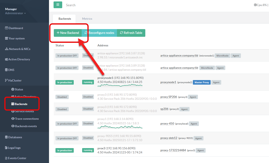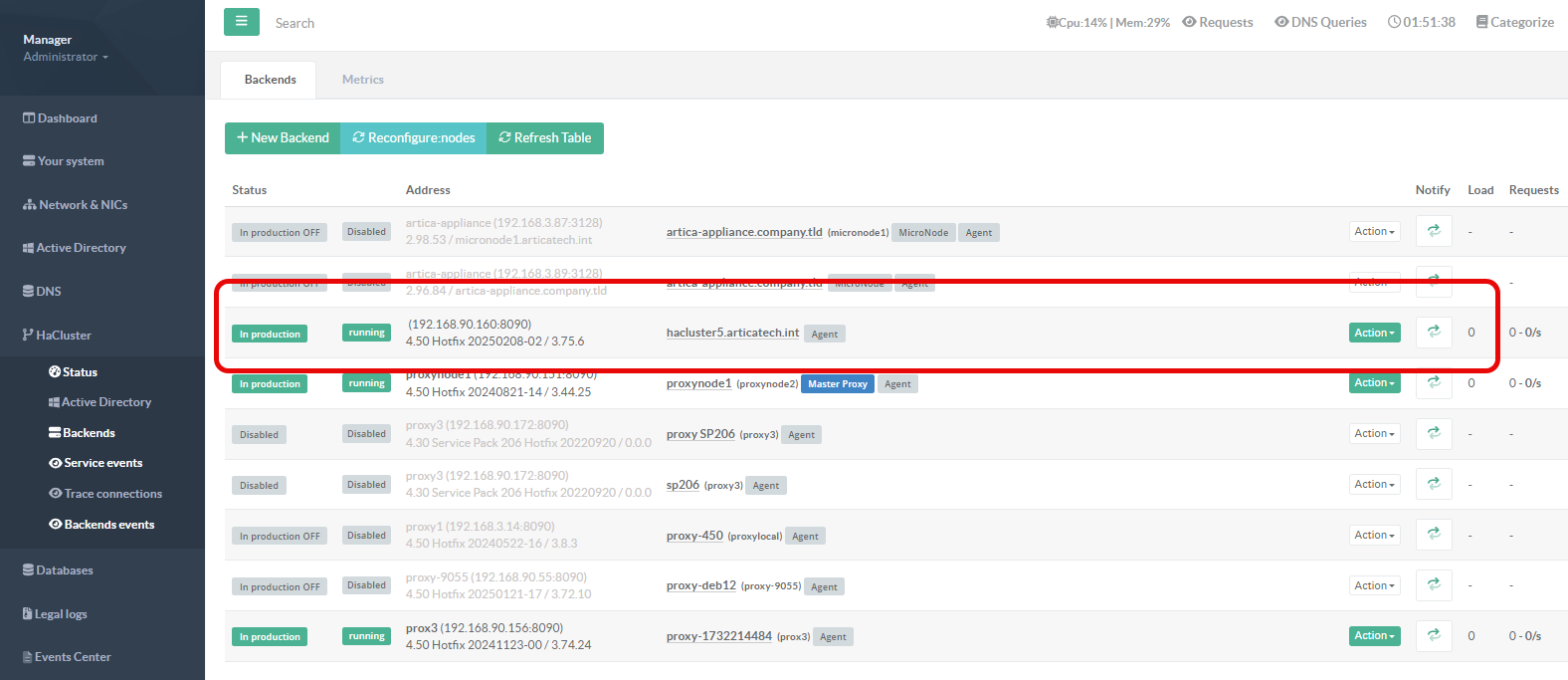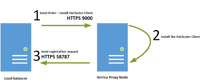 The creation of a link from an Artica server that will act as a proxy from the load balancer is facilitated by the fact that the load balancer will send a command to the remote server through the remote server's web console.