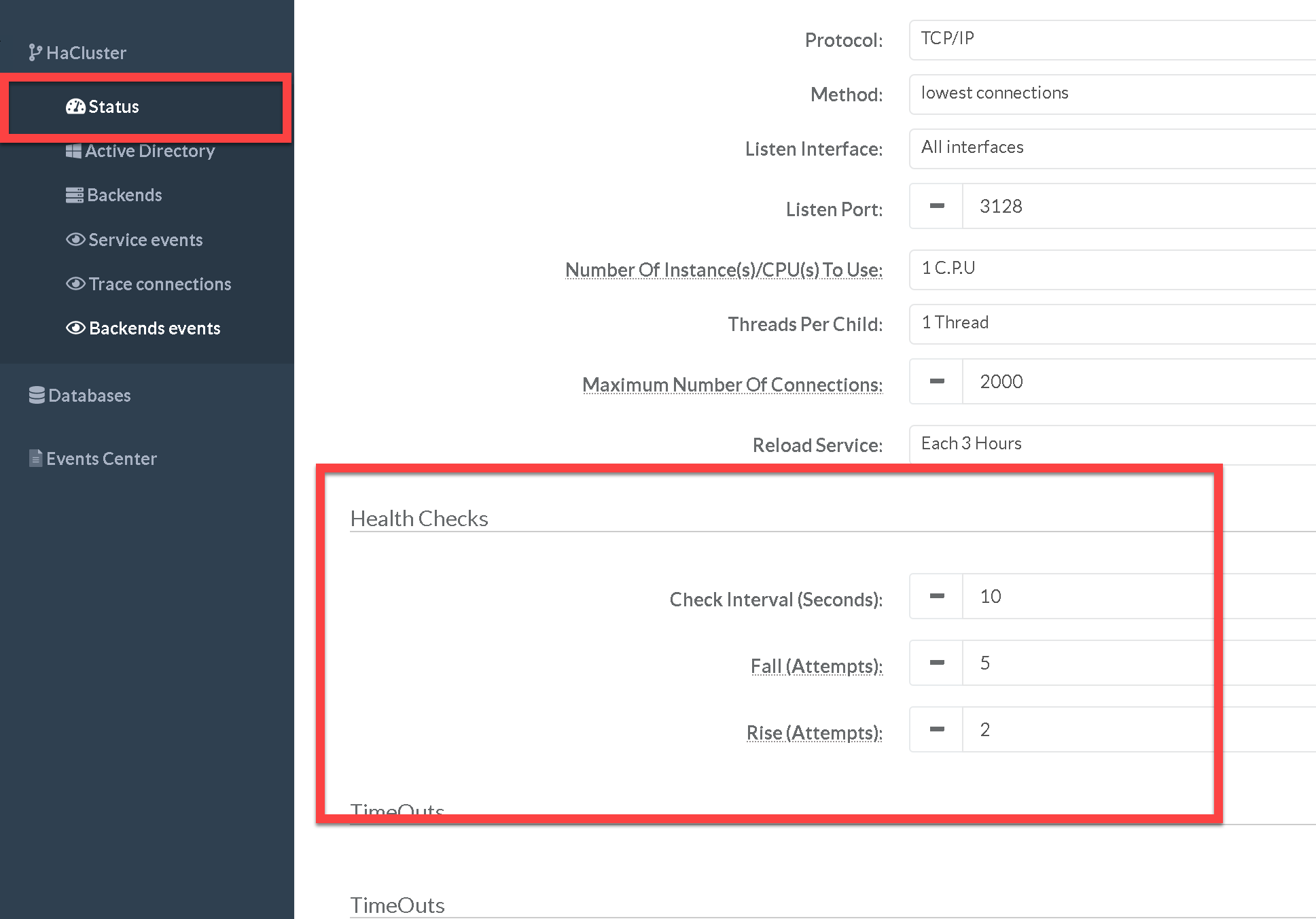 HaCluster uses the method of polling your backend servers by attempting to request a statistics report from the proxy service at a set interval.