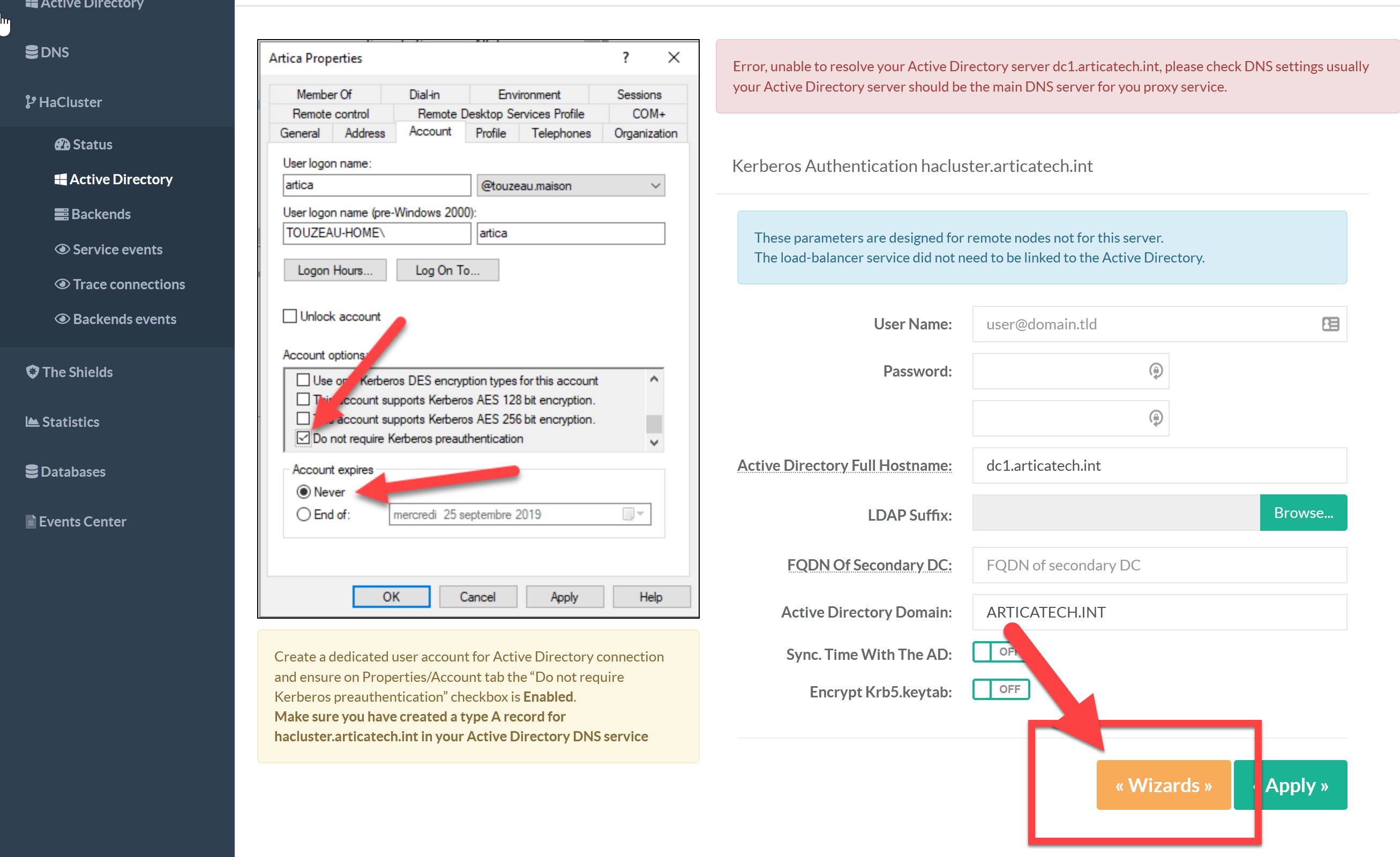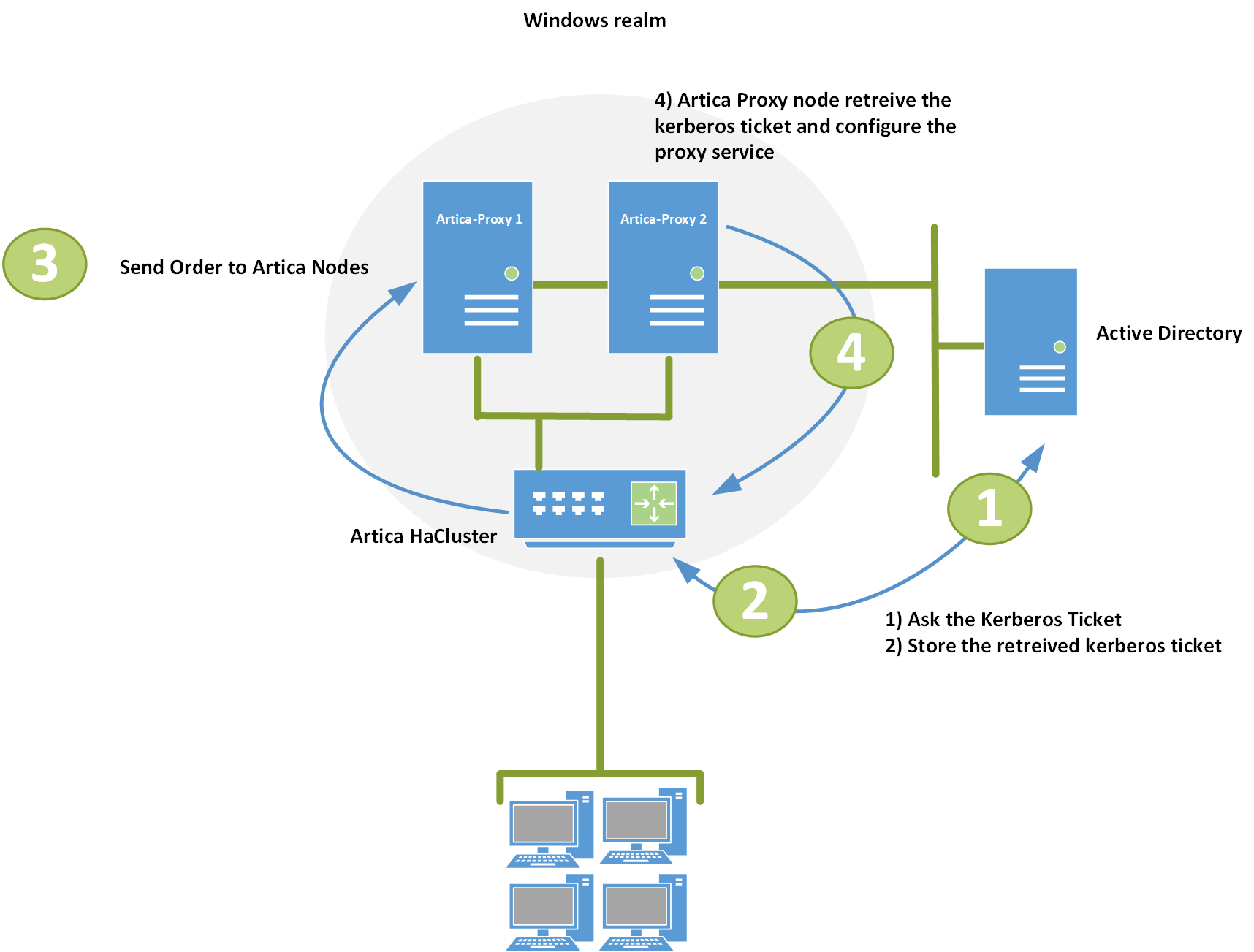 The Artica HaCluster will ask a kerberos certificate to the Active Directory.