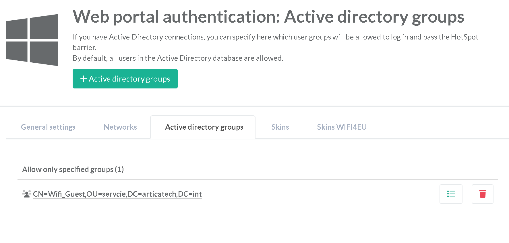 You may not want your users to be able to log in to the portal if they are not part of specific Active Directory groups.