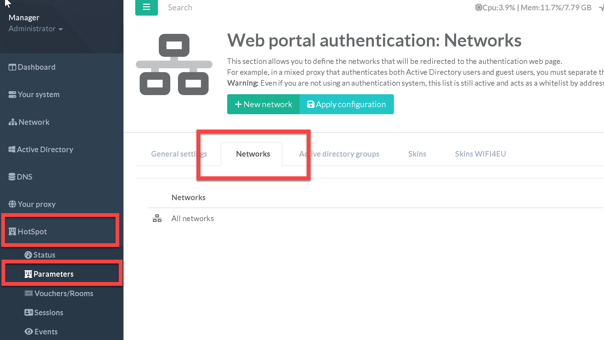 HotSpot” > “Parameters”, click on the Networks tab.