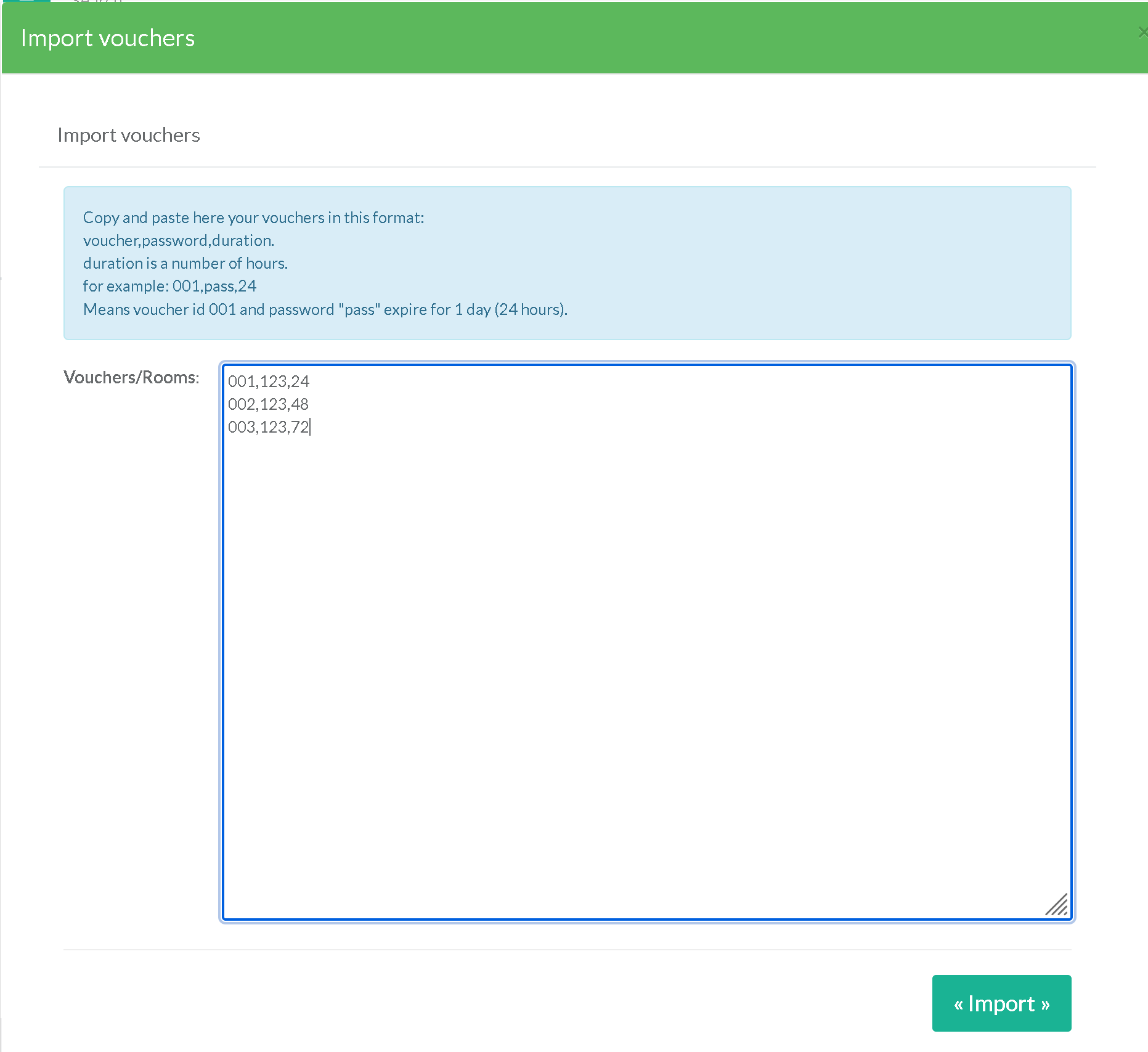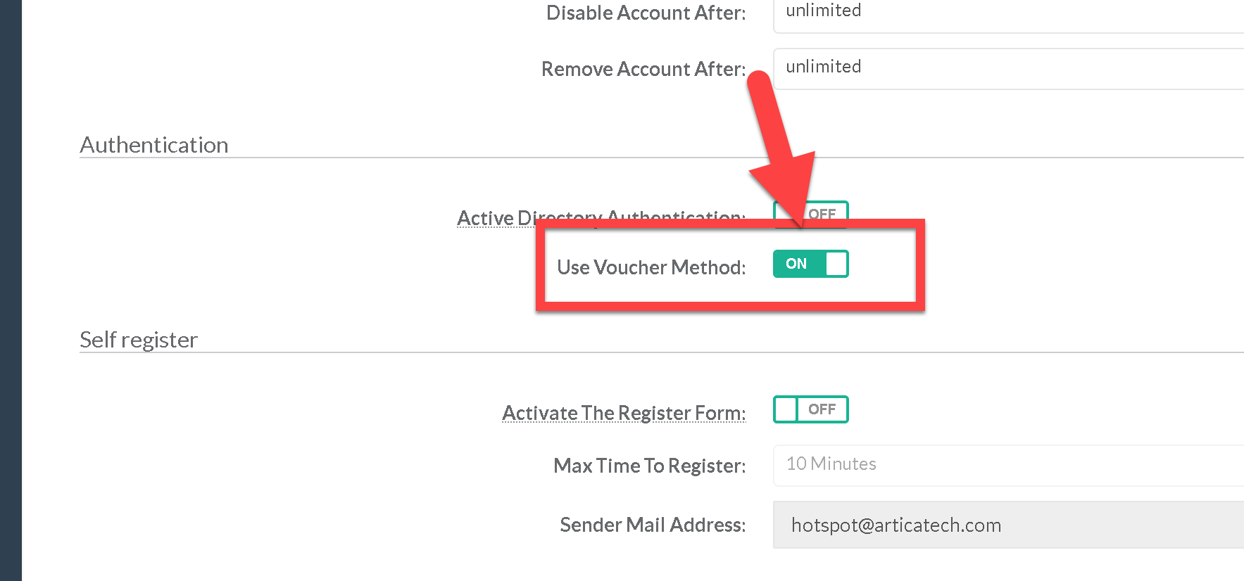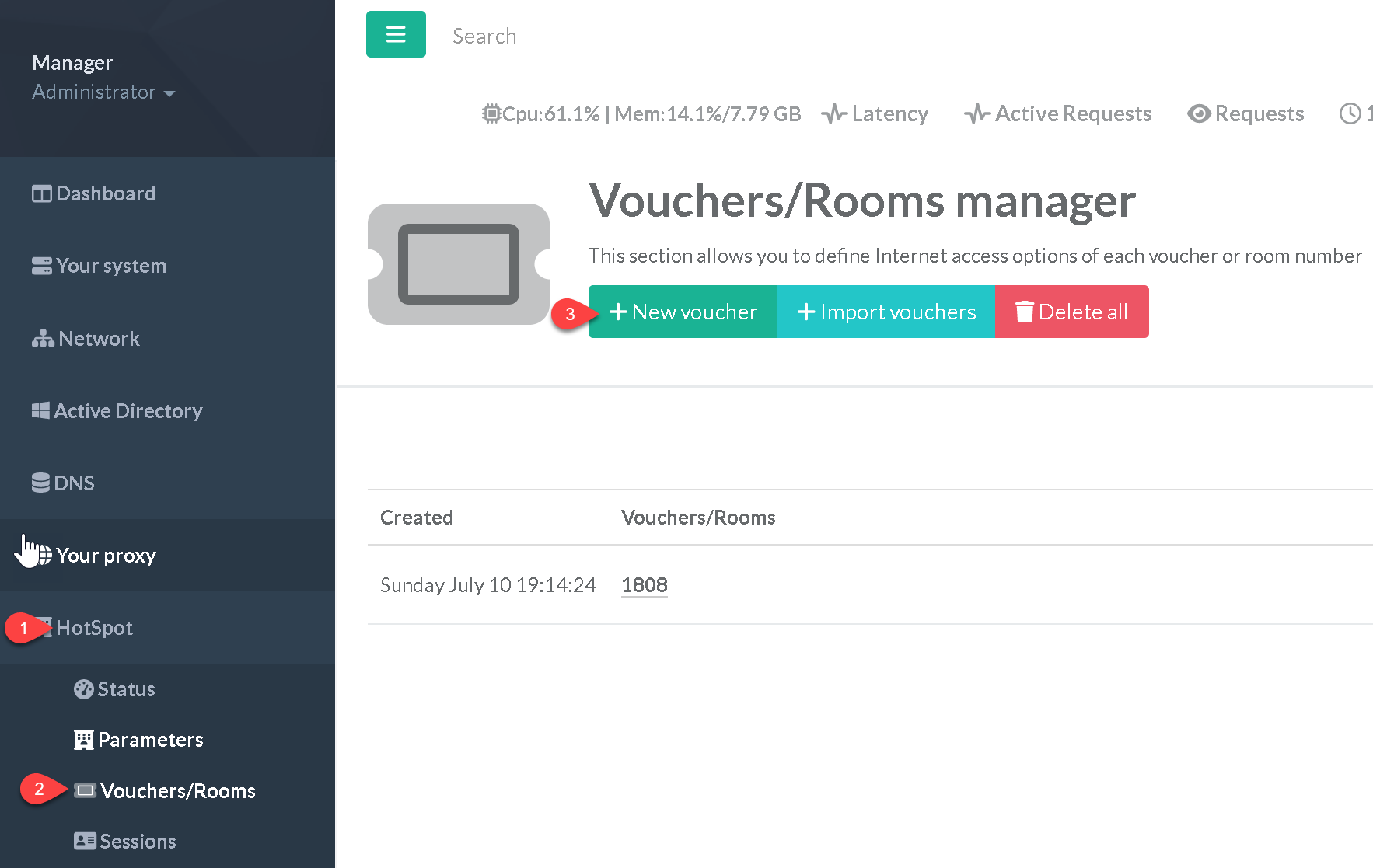 On the left menu, use “HotSpot” > “Vouchers/Rooms”