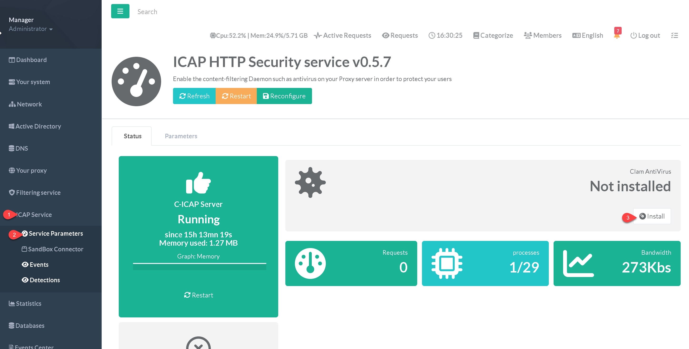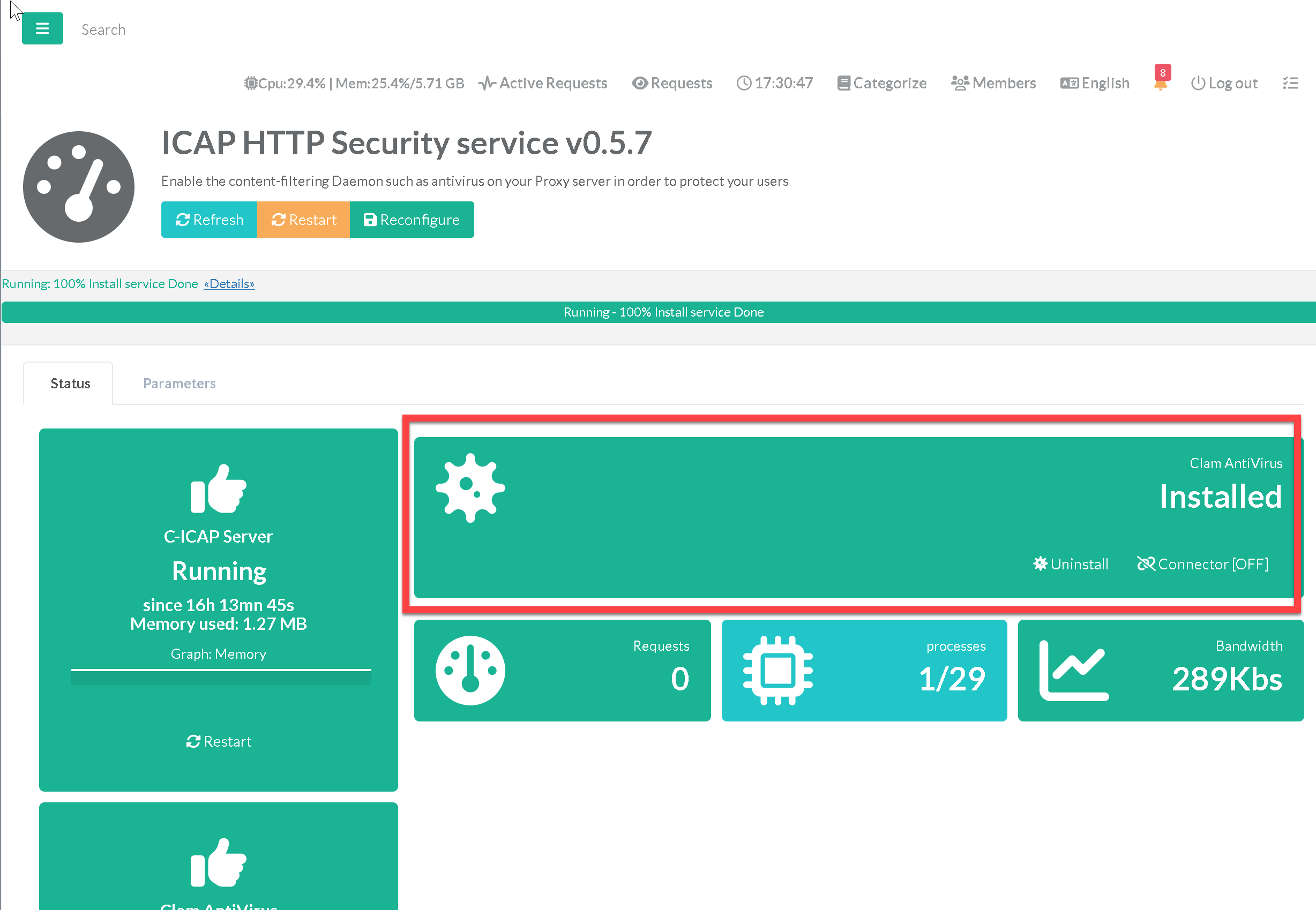 When you activate the ClamAV antivirus engine, you ensure antivirus scanning of the HTTP or SSL stream (if decrypted)