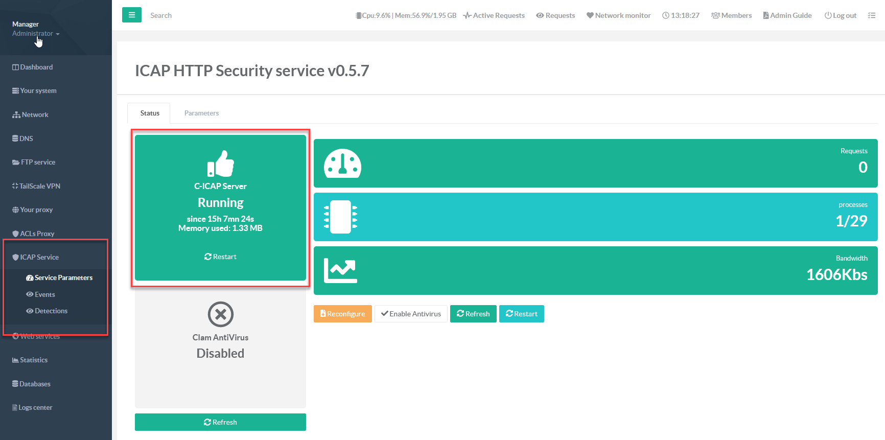 - After installation, you will see “ICAP Service” in the left menu
