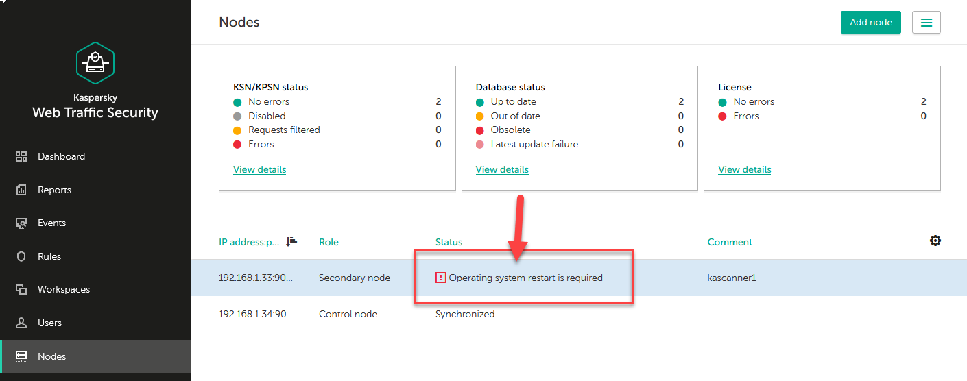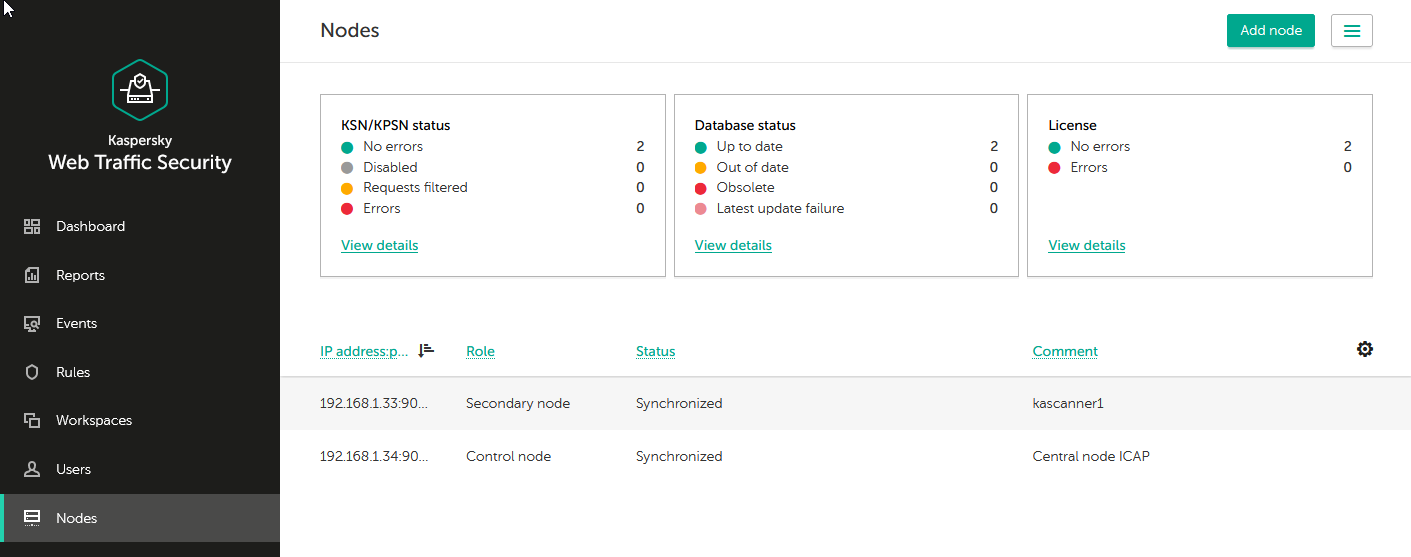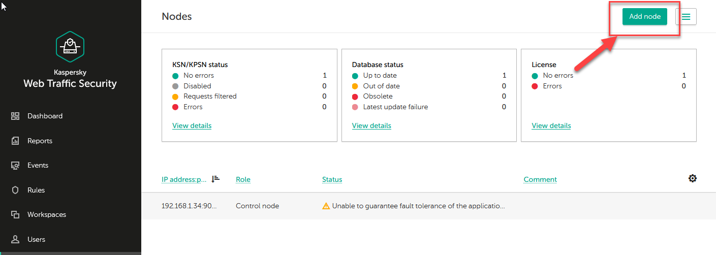To add a new node, install a server with the same installation procedure ( see How to install Kaspersky Web traffic Security on a Debian system )