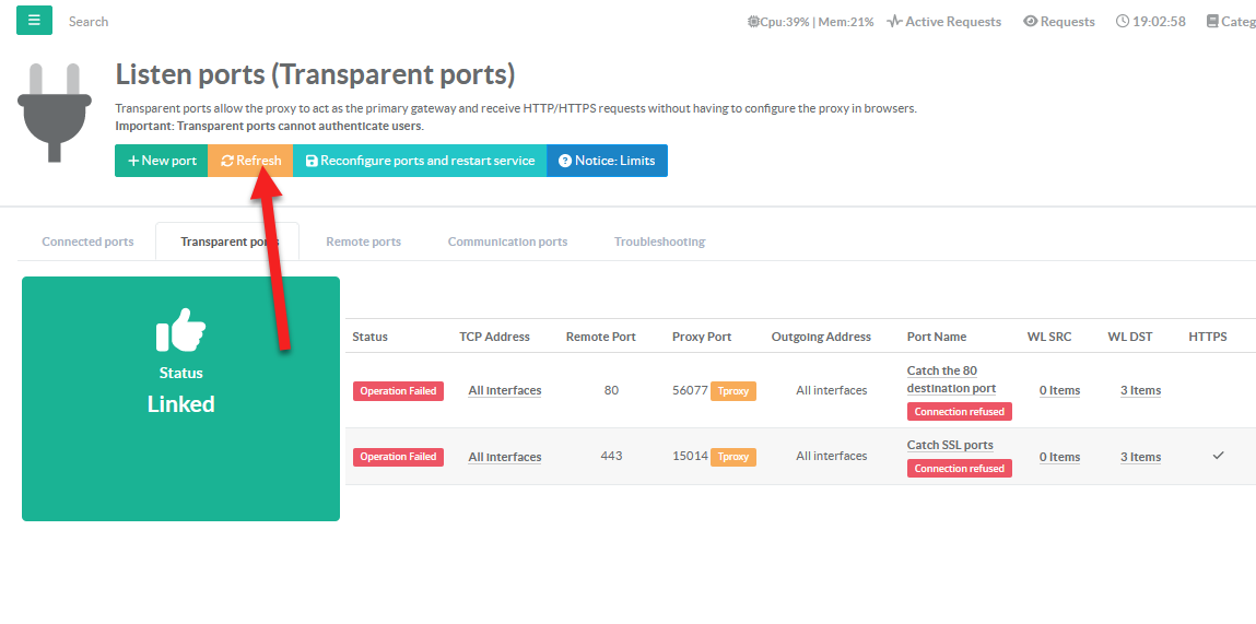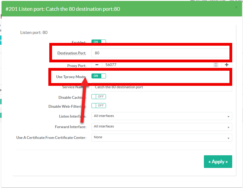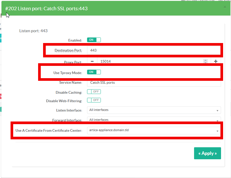 ¶ Create an HTTPs transparent proxy port (Port 443)