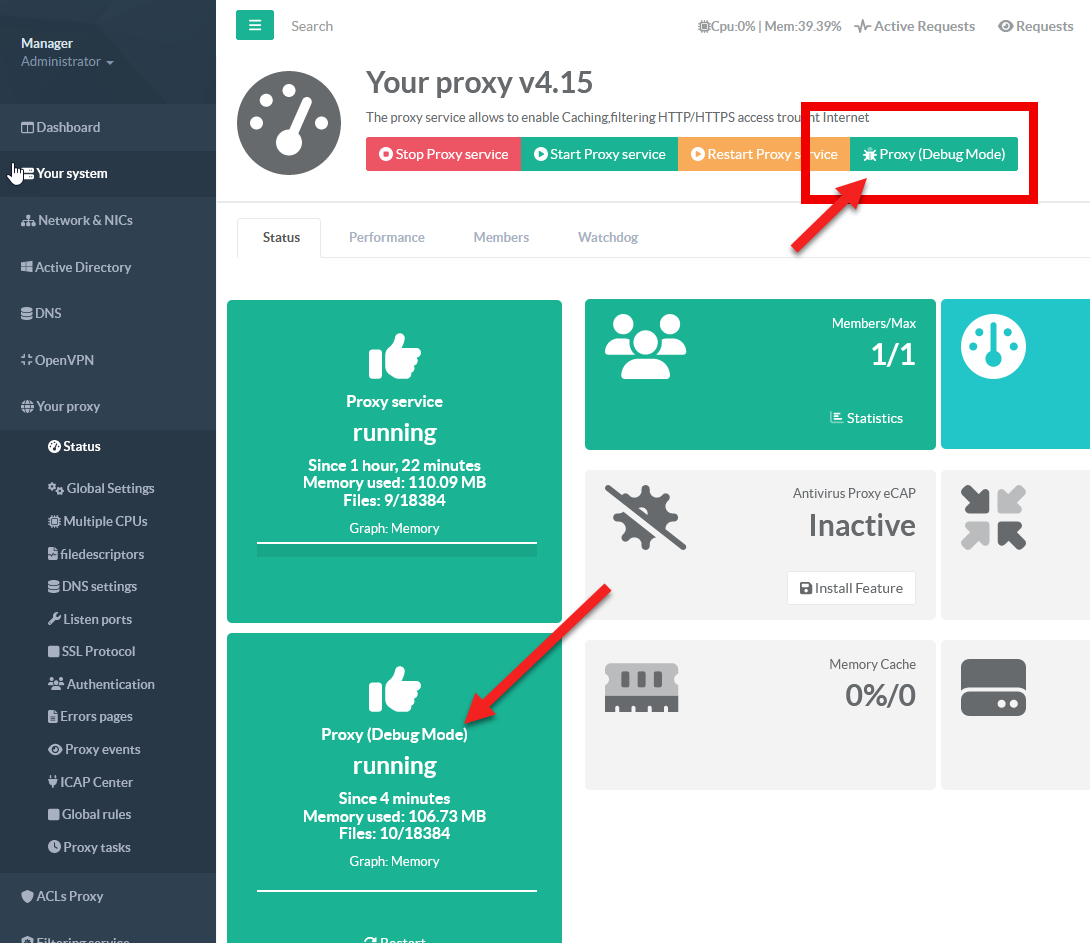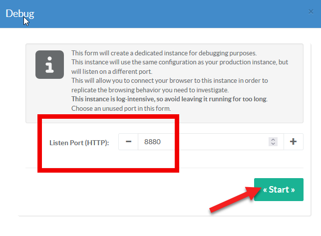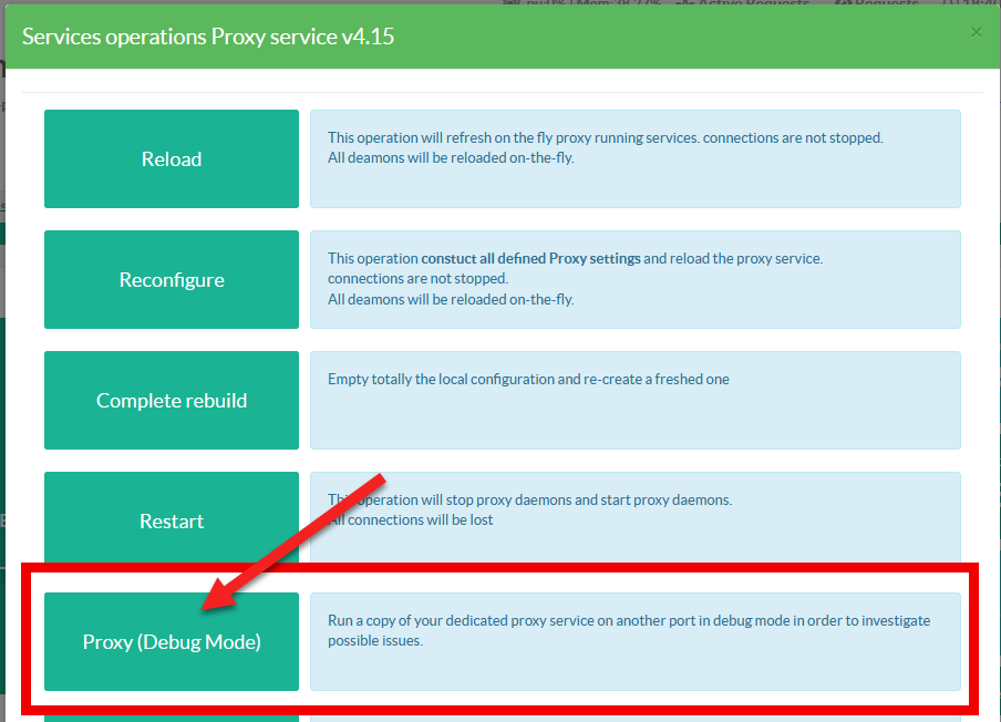 It allows you to run a new instance in debug mode on a different port on your Artica machine, with the same rules and configuration as the production service.