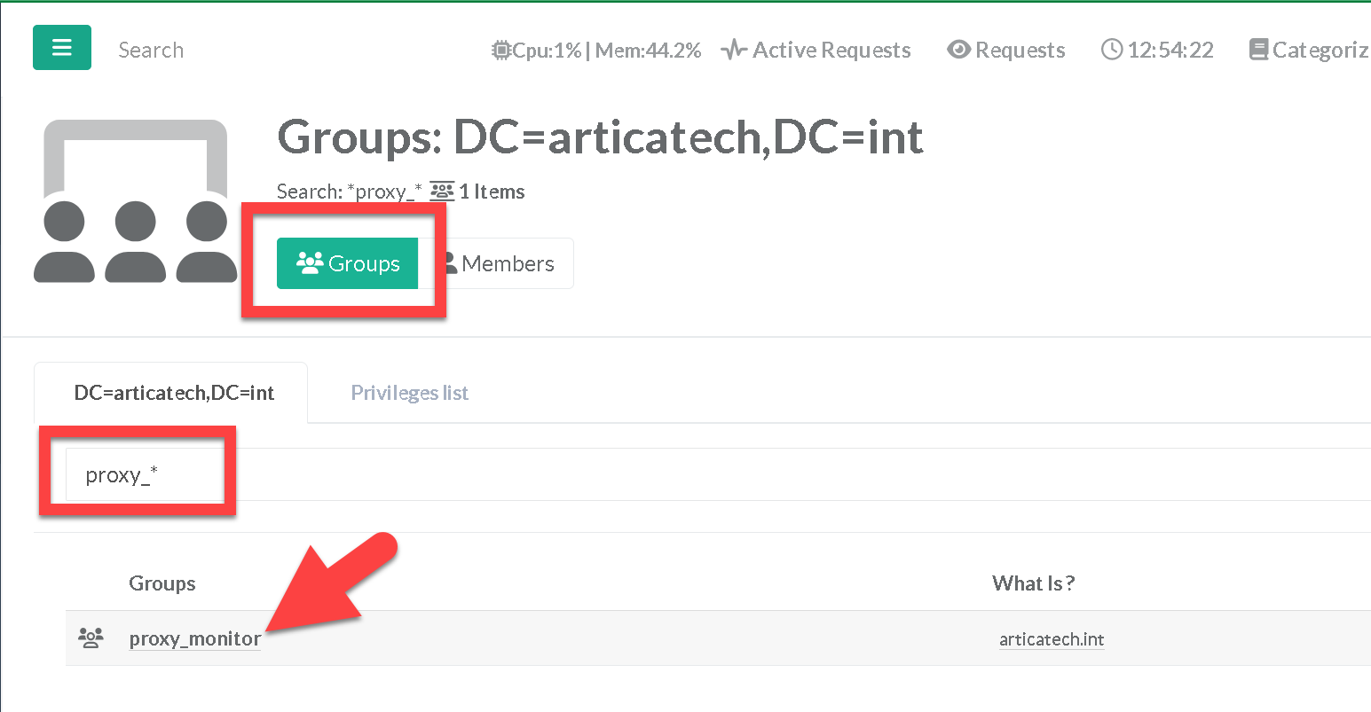 In our case, we have created a group proxy_monitor inside the Active Directory database