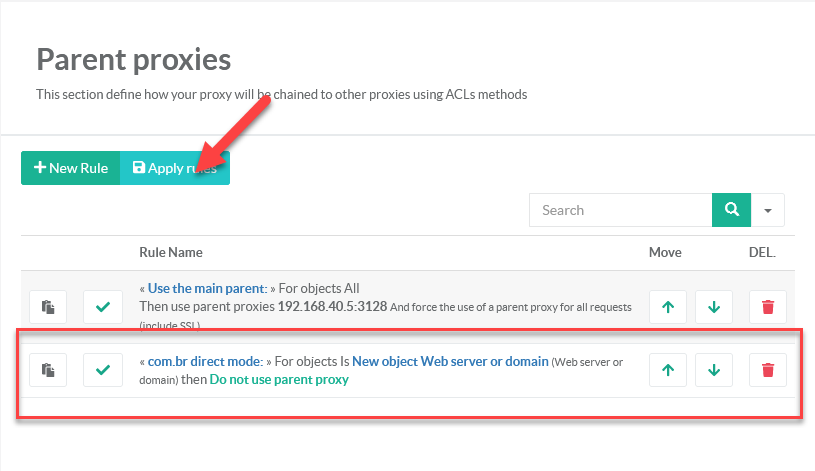 For example, we need Artica to use parents for all websites except some domains. In our case we need that everything to *.com.br will use the direct mode.