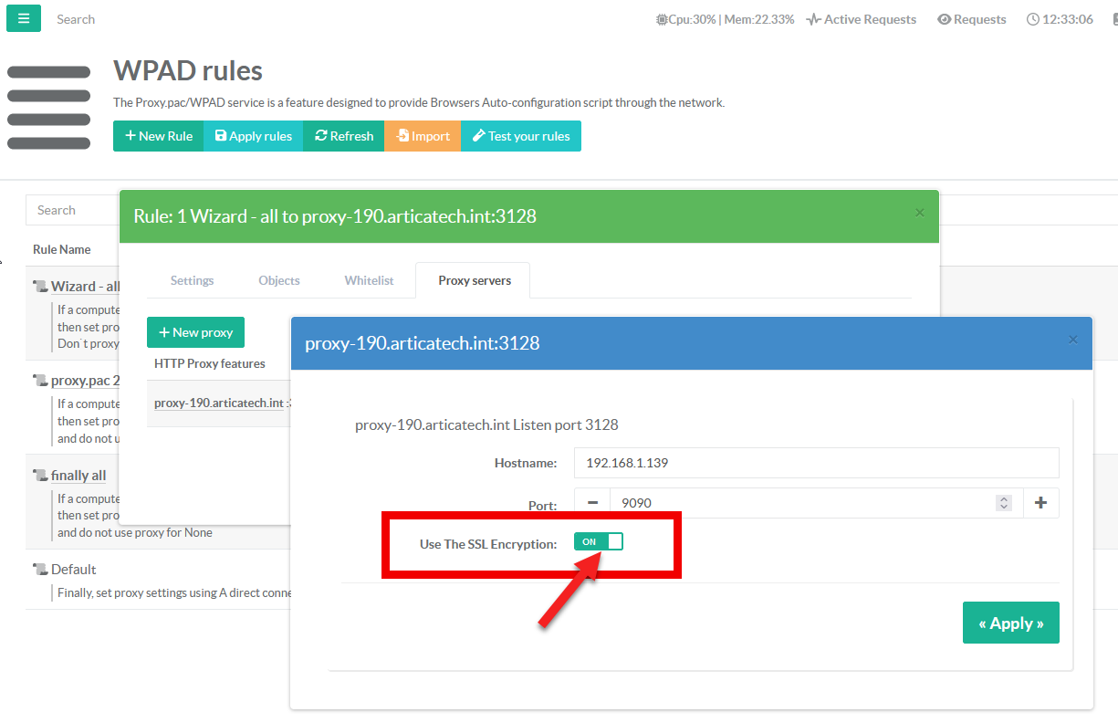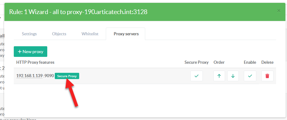 If you've set up a Secure proxy ( HTTPs port ) with Artica you'll need the proxy.pac service to force browsers to use this type of proxy.