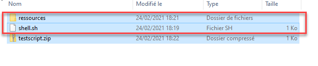 compress the shell script and associated files in zip format: