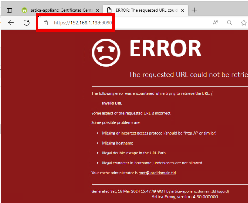 If, on the other hand, you have used a self-signed certificate and the root certificate is not in the trusted certificate container, the browser will complain about this behavior. ( NET::ERR_CERT_AUTHORITY_INVALID )
