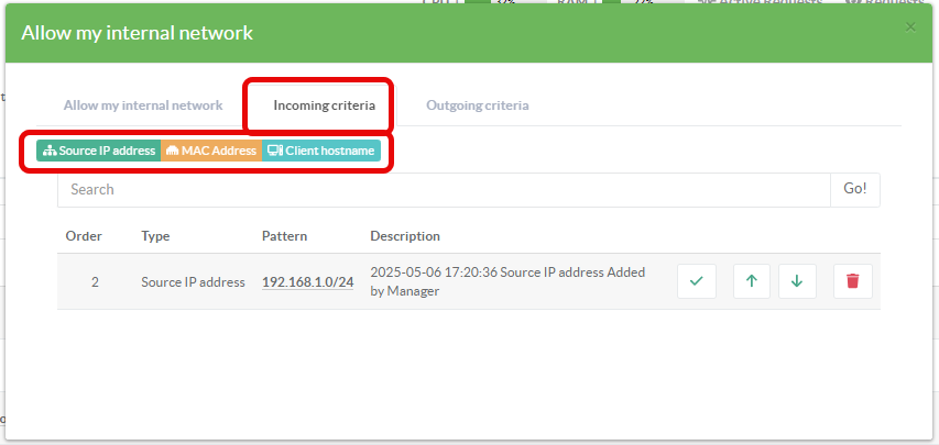 1.2.3.4), a CIDR block (1.2.3.0/24), or an explicit range (1.2.3.4-1.2.3.254).aa:bb:cc:dd:ee:ff or aa-bb-cc-dd-ee-ff).host.domain.tld) or entire domains (domain.tld), using:d*main.*)domain\.[a-z]+)