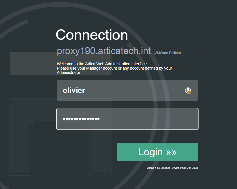 When user log into the Artica Web console