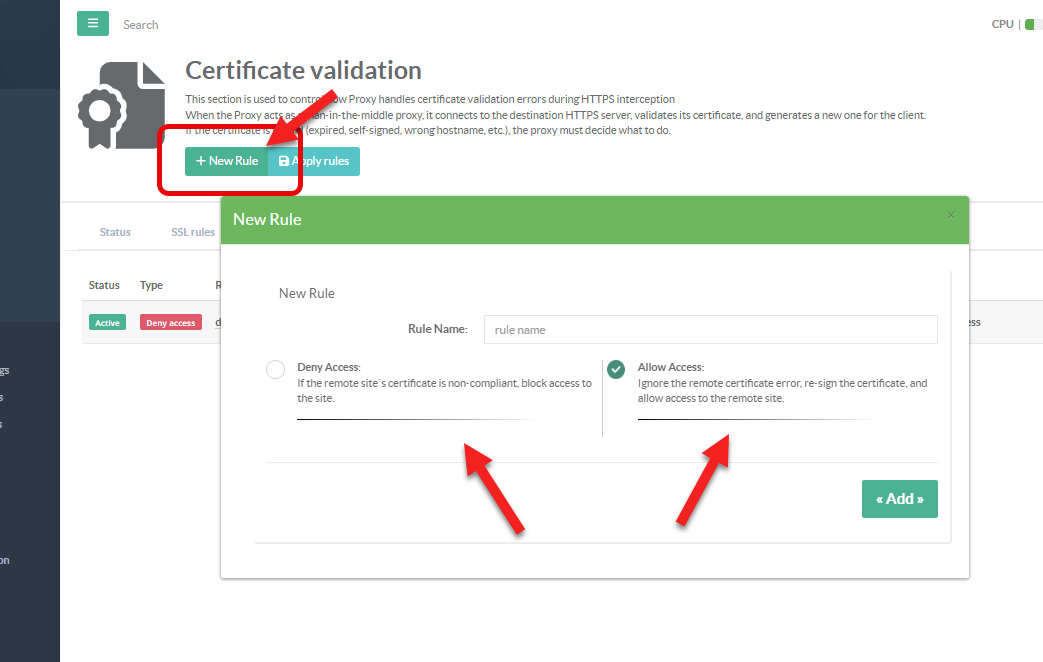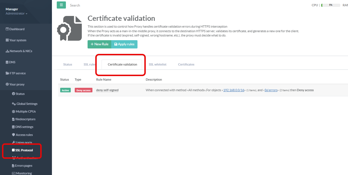 Artica proxy provides a set of Access Control Lists (ACLs) that allow administrators to take actions based on SSL certificate validation results when using SSL MAN-IN-THE-MIDDLE for HTTPS inspection.