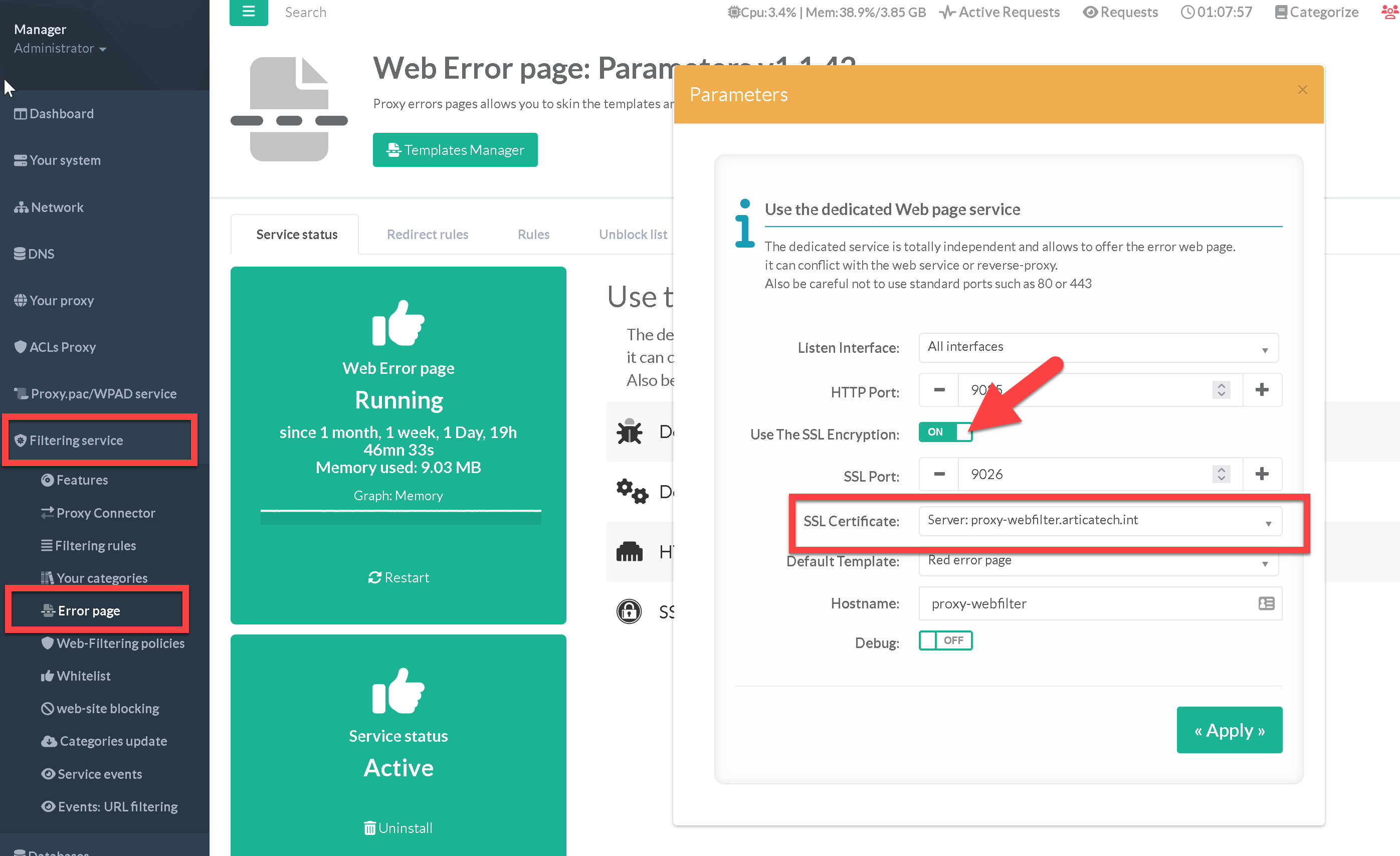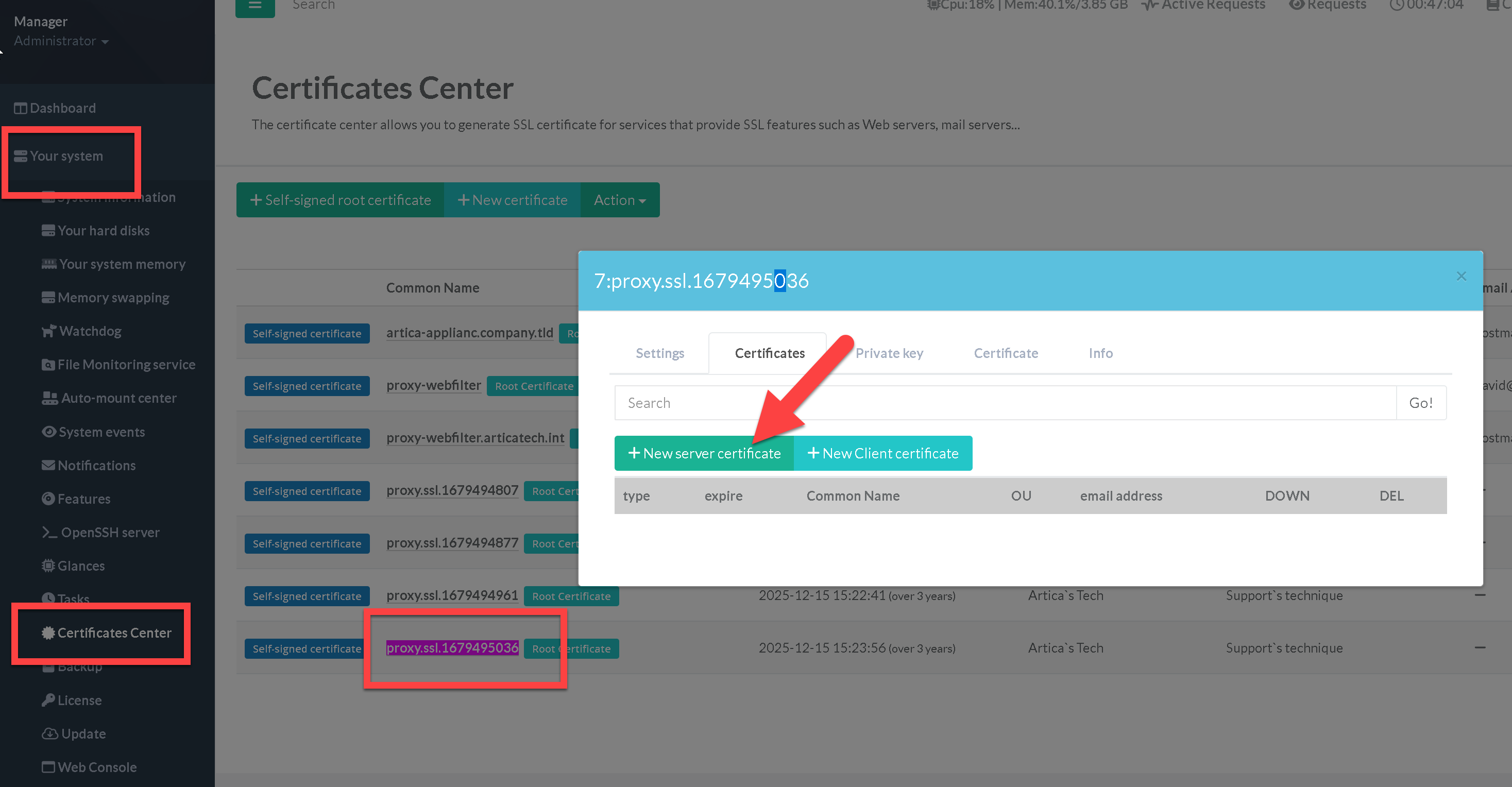 The same applies if you do not want to have an SSL error on the Artica administration web page.