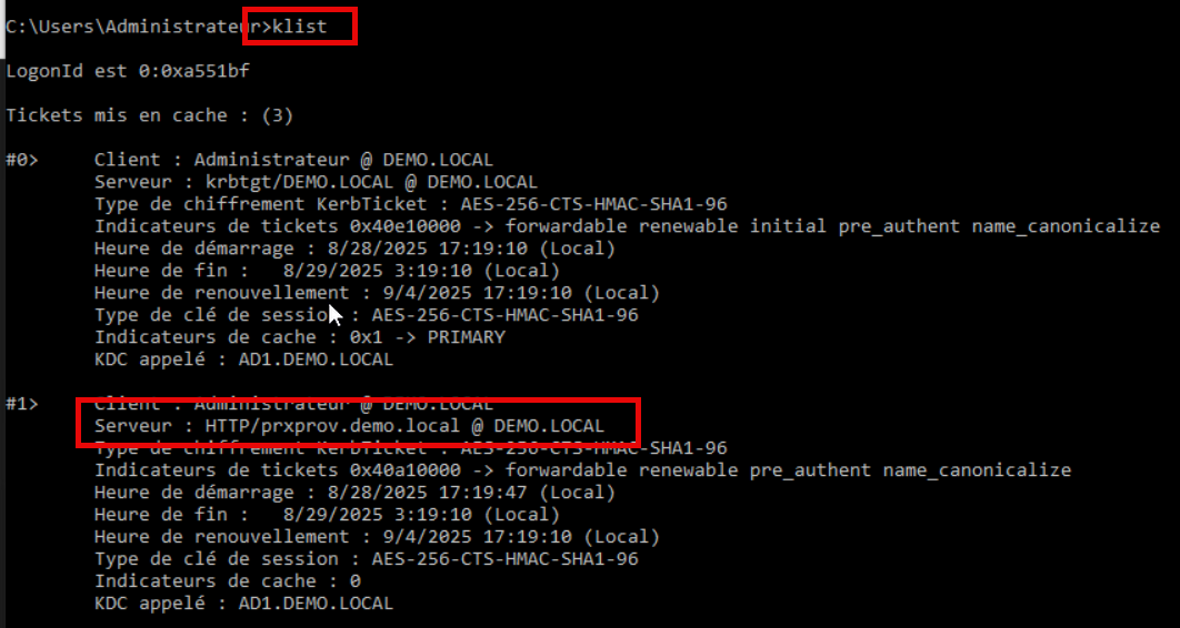 On the workstation, open a Command Prompt (cmd) and run: klist.[br]
