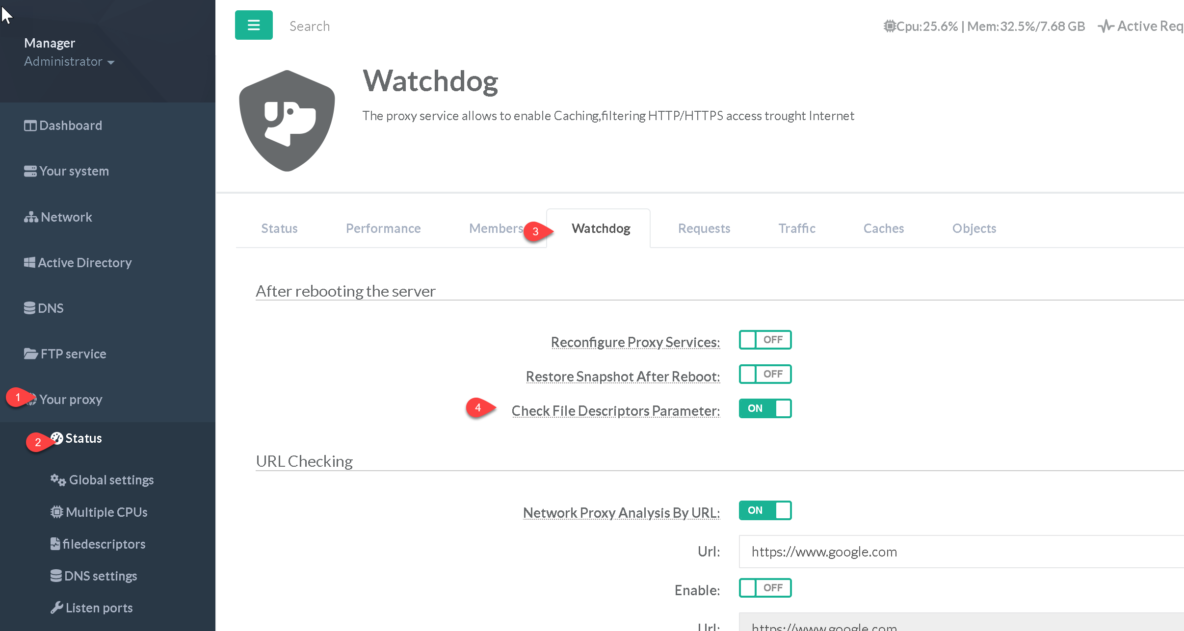 If this is not the case (after the reboot for example) then the proxy service will be restarted in order to restore the parameter in memory.