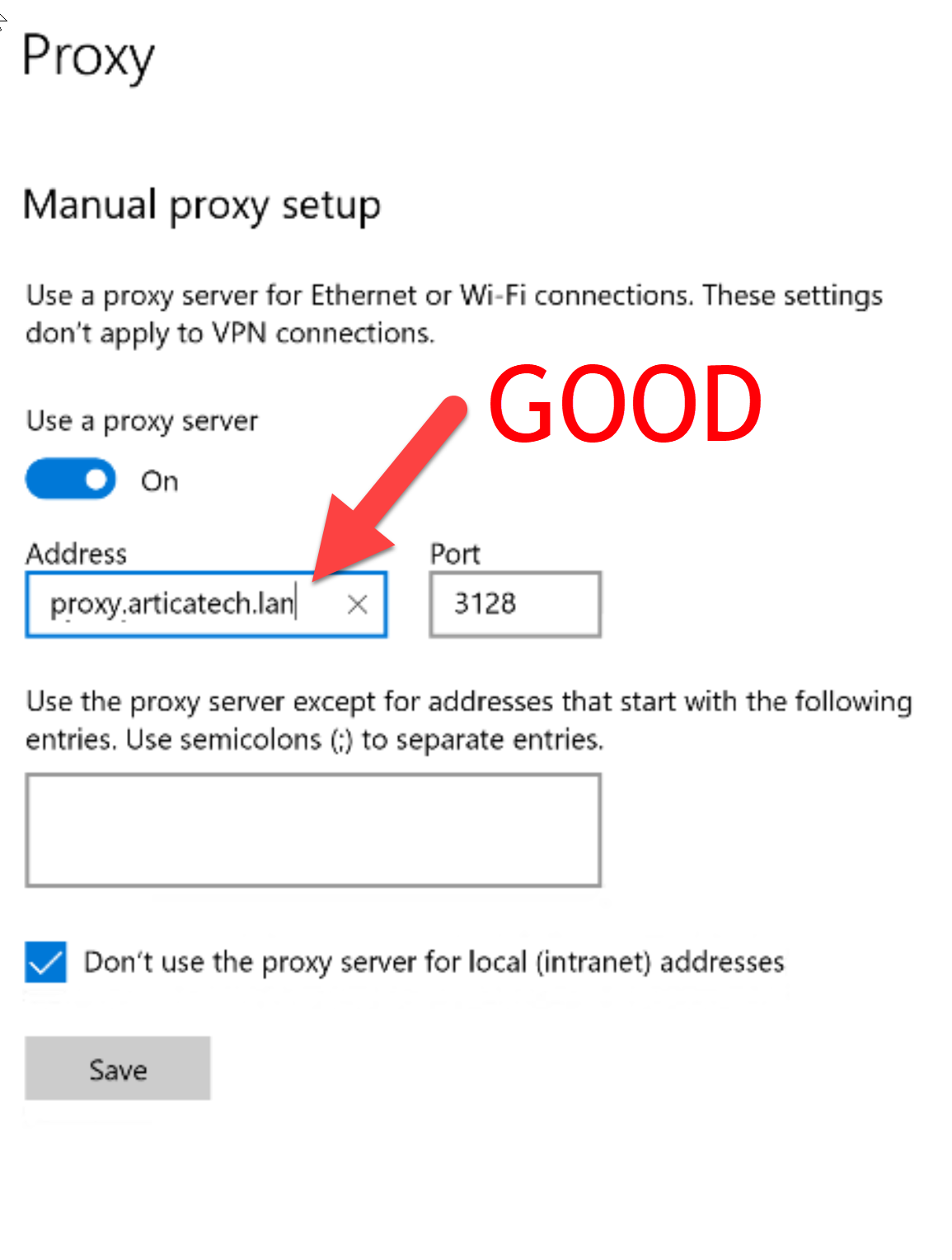 If your computer connects to the proxy from outside the Microsoft domain, please note the following information