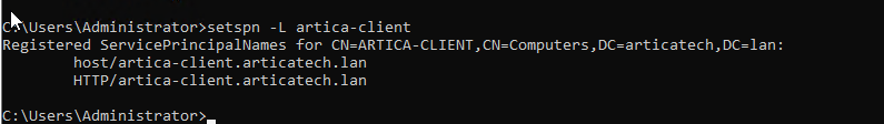 On your Windows Active Directory type setspn -L [your artica server name]