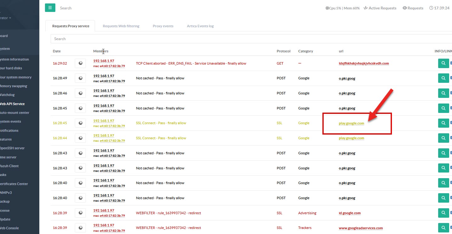 Indeed, the proxy may be blocked by the firewall, lack access to DNS, or have insufficient network routing to reach the request.This feature is available on Artica v4.50 Service Pack 1 or Artica v4.50 Hotfix 20240914-17