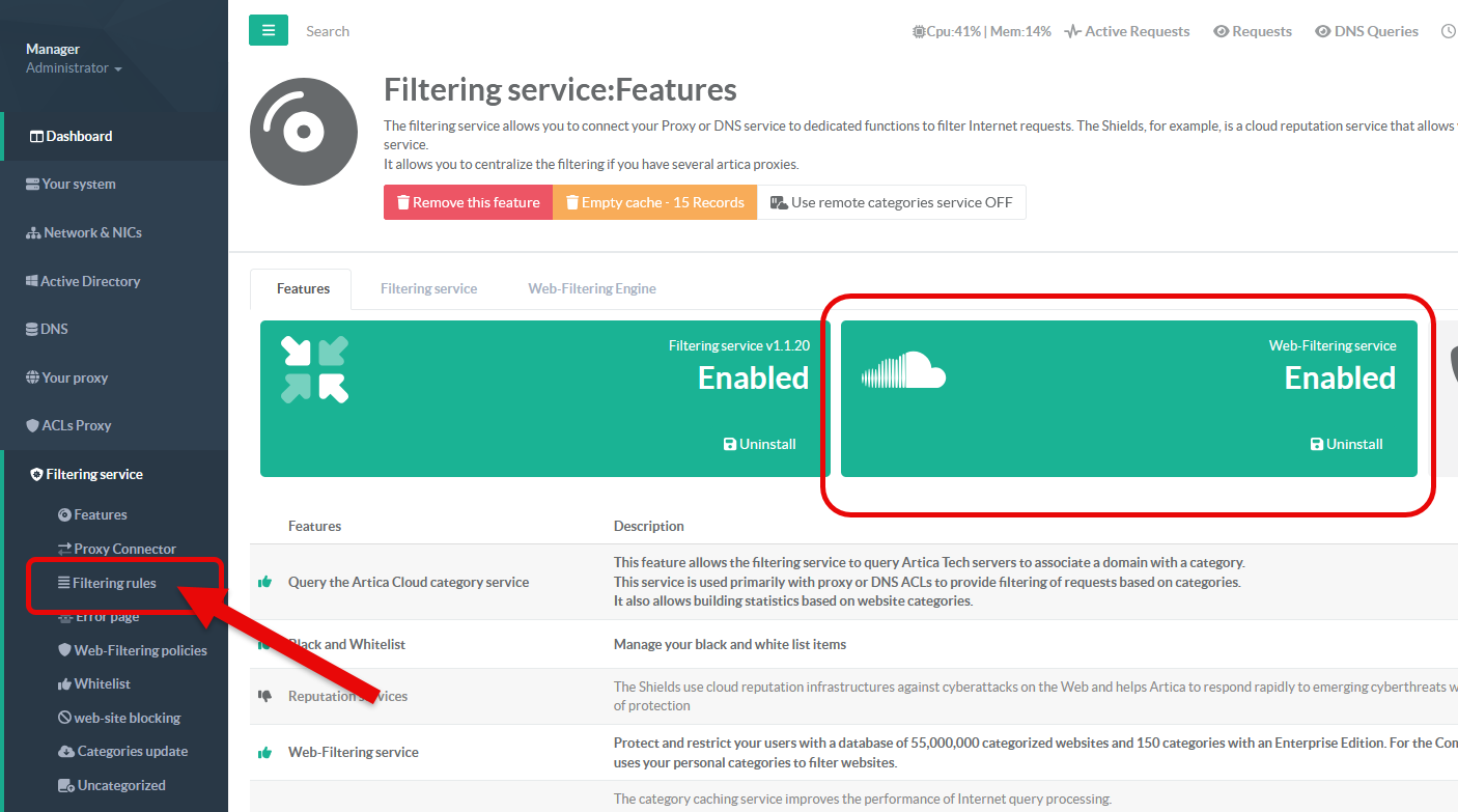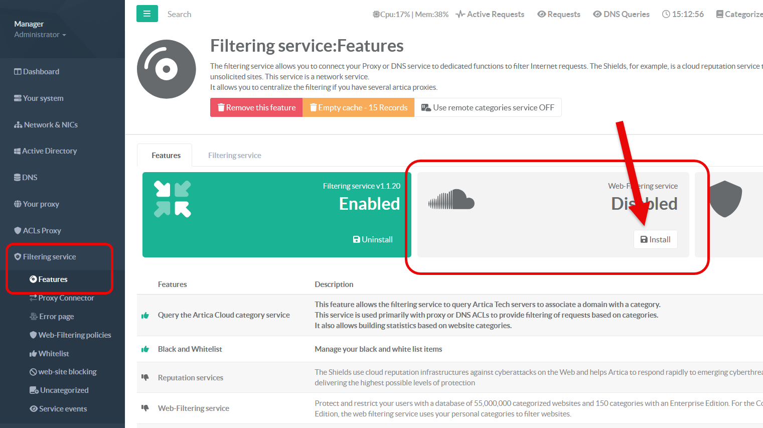 The Web-Filtering service can be installed using the features section in the 4.50x version
