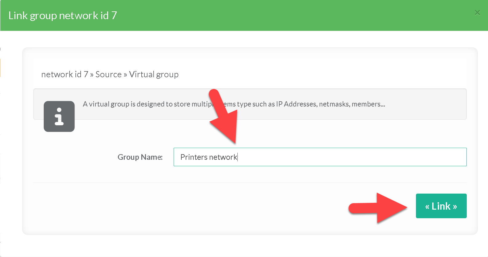 - A new panel appears, allowing you to mix different types of groups, click on the link group button