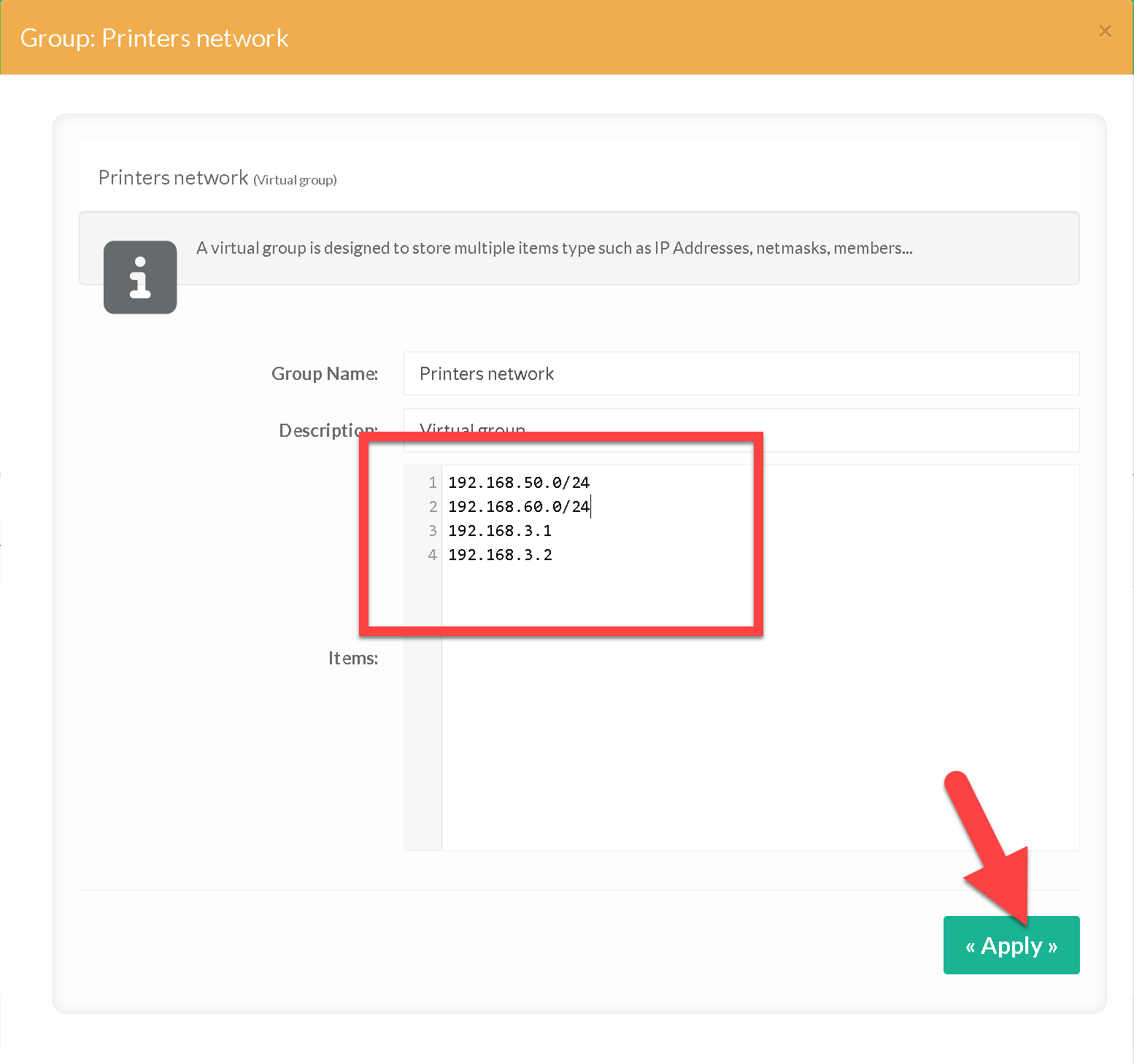 - Set the list of networks you want to define as source. It can be a single IP address or a CDIR notation.