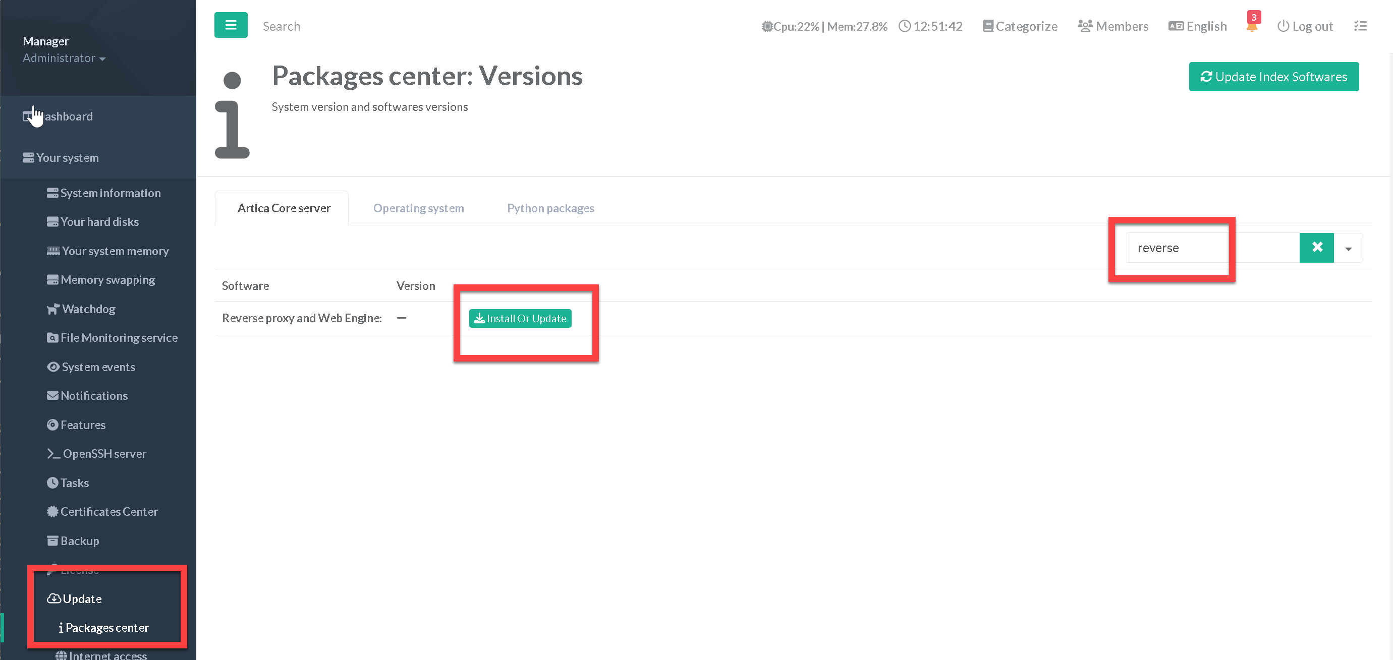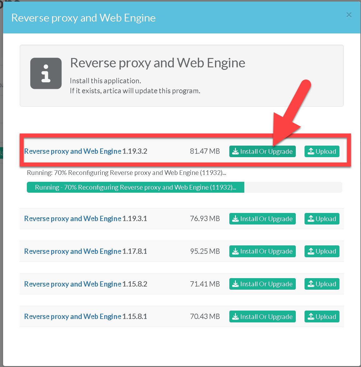 If the Web engine is not installed, or if you plan to use the reverse-proxy, it is always necessary to install the latest updates for the engine.