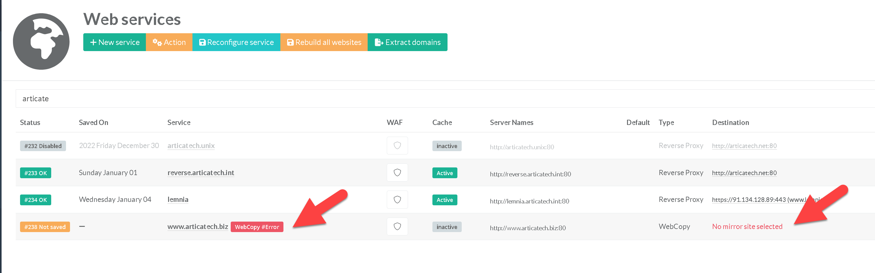 After added your site, you will see a red status because you need to choose with mirrored site to publish.