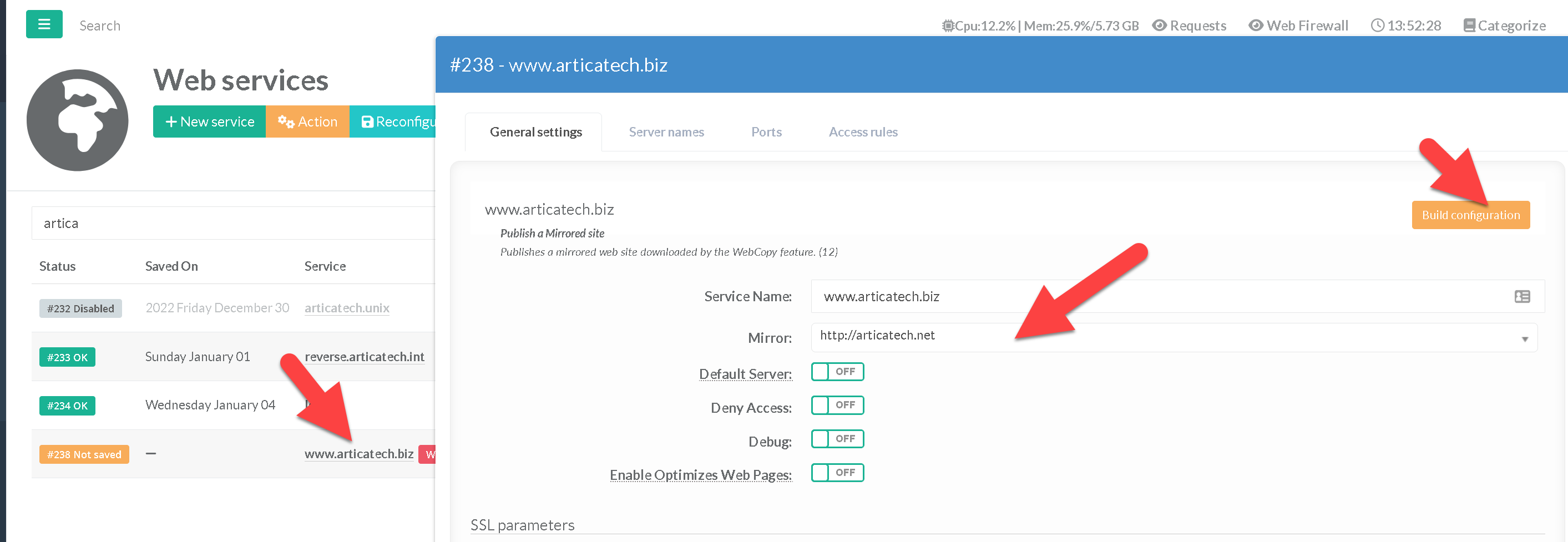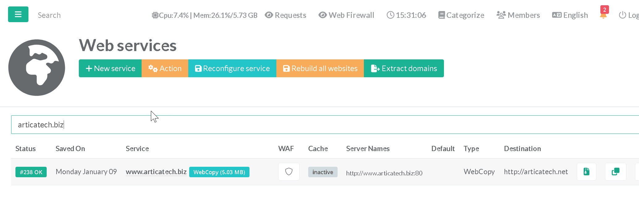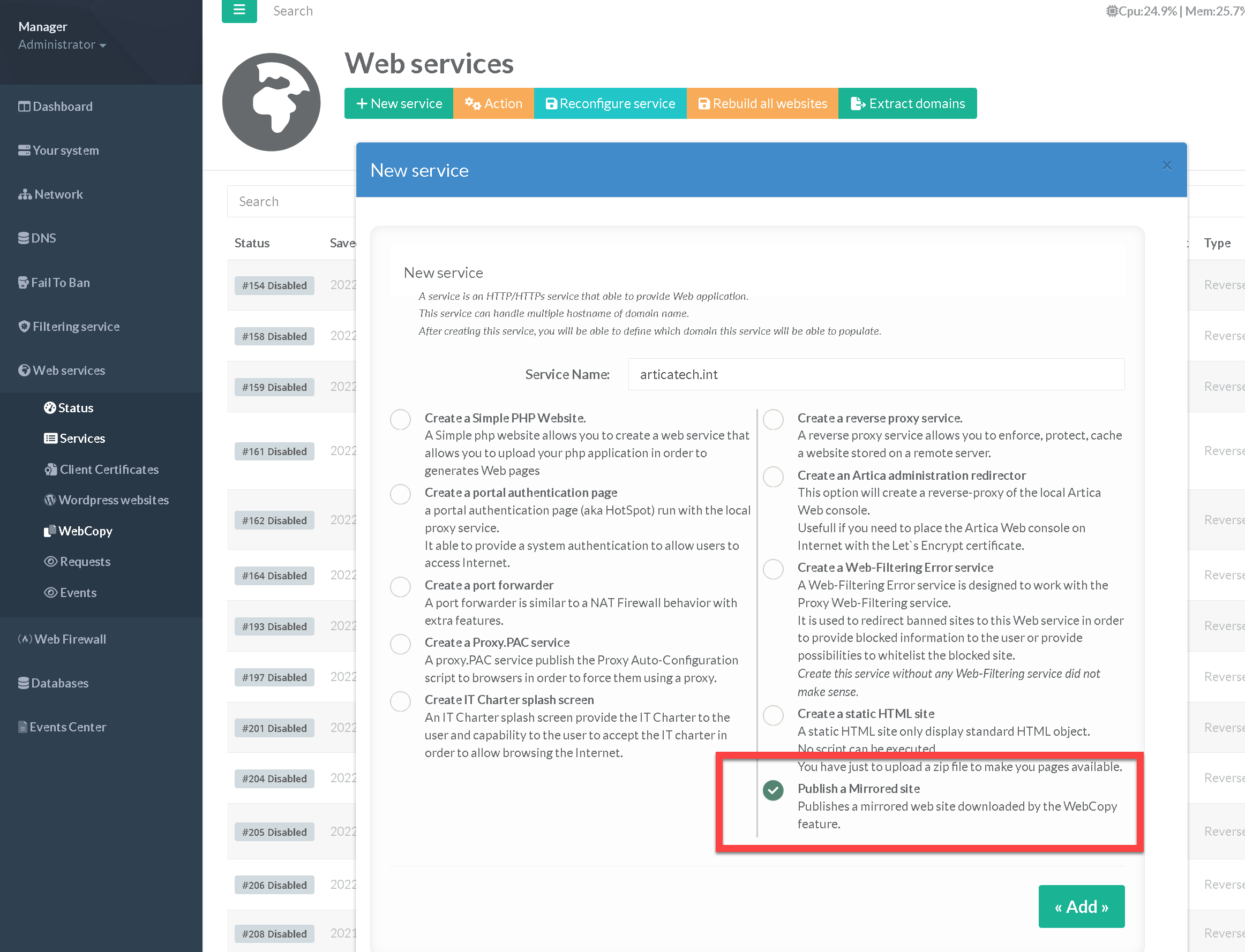 Once compiled your reverse-proxy service will publish the local directory of the mirrored website.