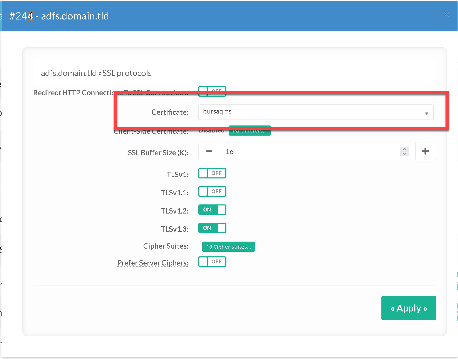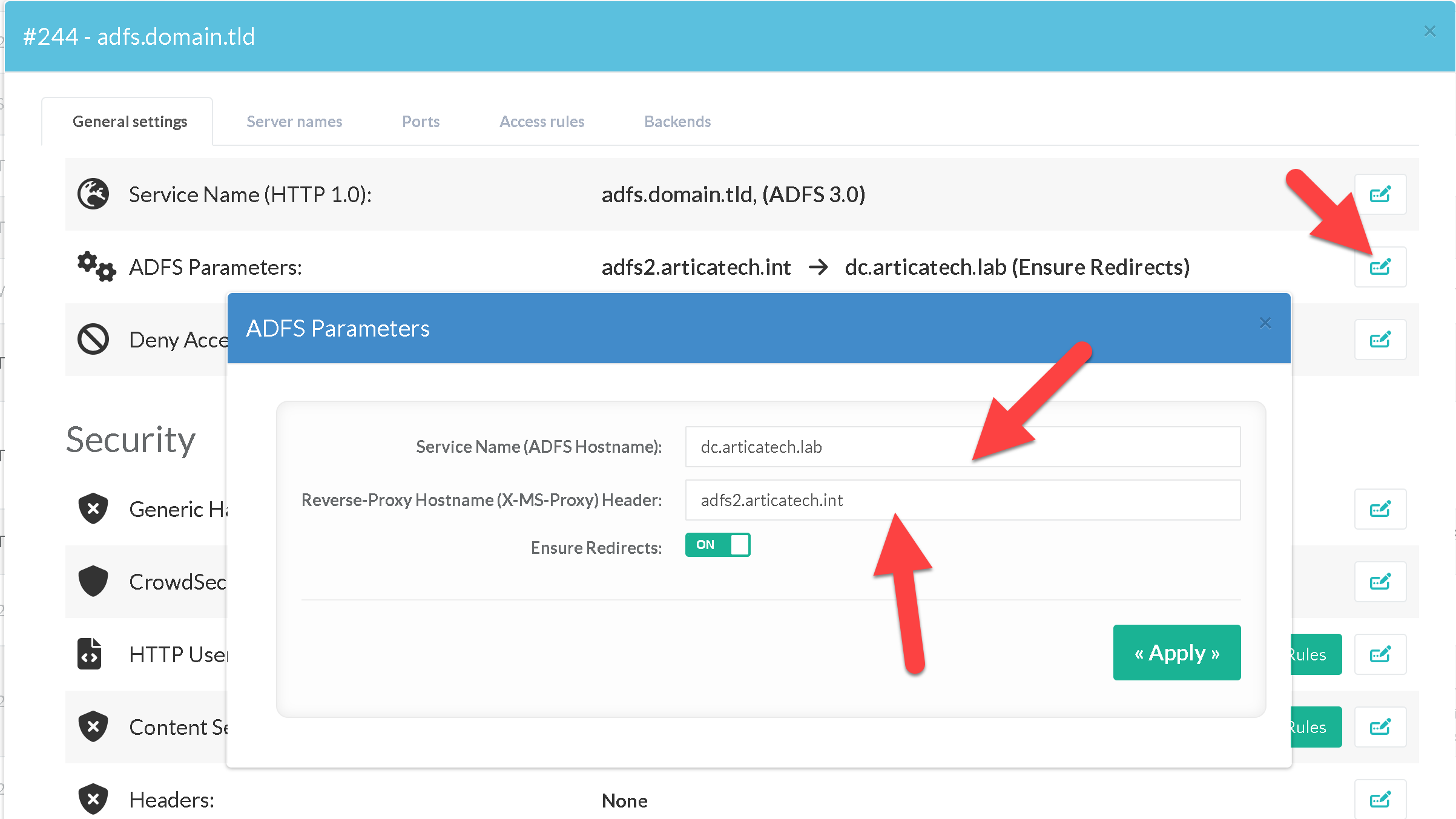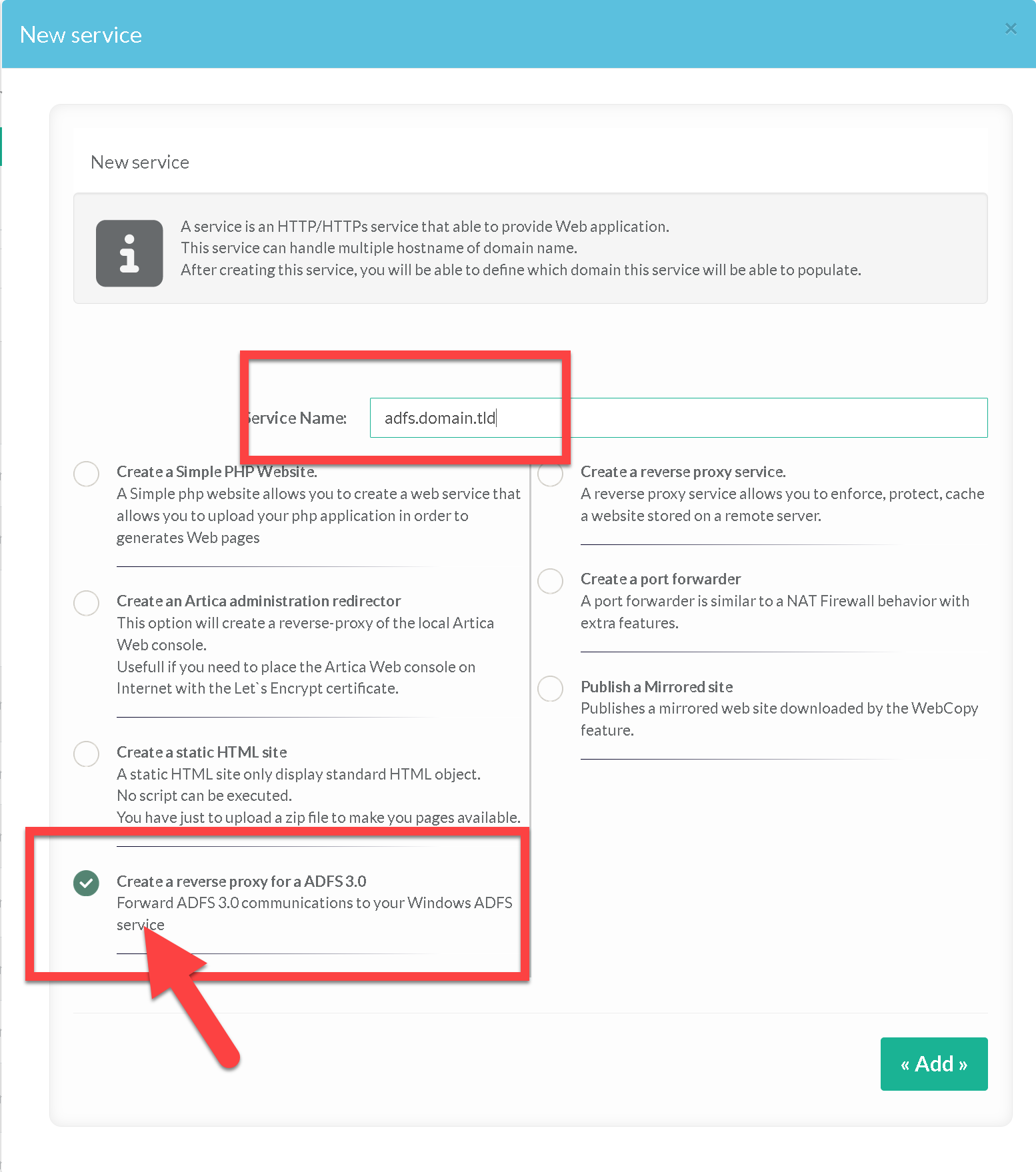 This feature allows you to publish the ADFS service with an Artica reverse proxy. ADFS is a wonderful piece of infrastructure that allows you to create both internal and external federations using WS-FED, WS-Trust and SAML all in one neat package. Artica reverse-proxy lets you not only publish an ADFS service, but also ensure its security thanks to security layers such as the Web Application Firewall module. This feature is available with Artica v4.50 HotFix 20230912-18 or Artica 4.50 Service Pack 1