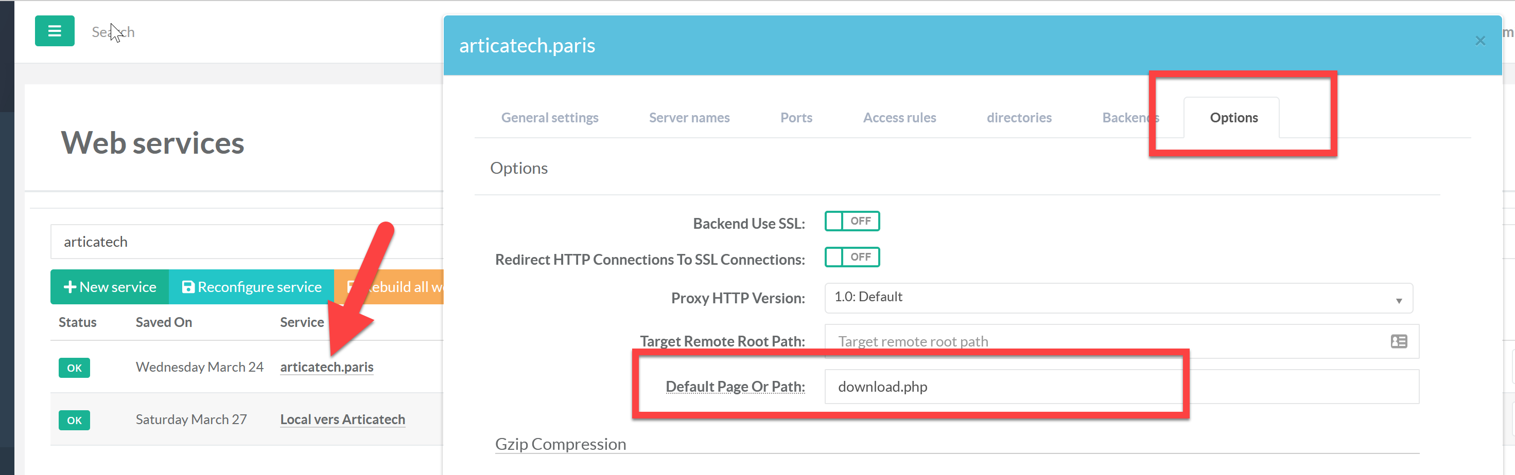 In our case when an Internet user type “http://articatech.paris/", we want to automatically redirects request to “http://www.articatech.paris/download.php”