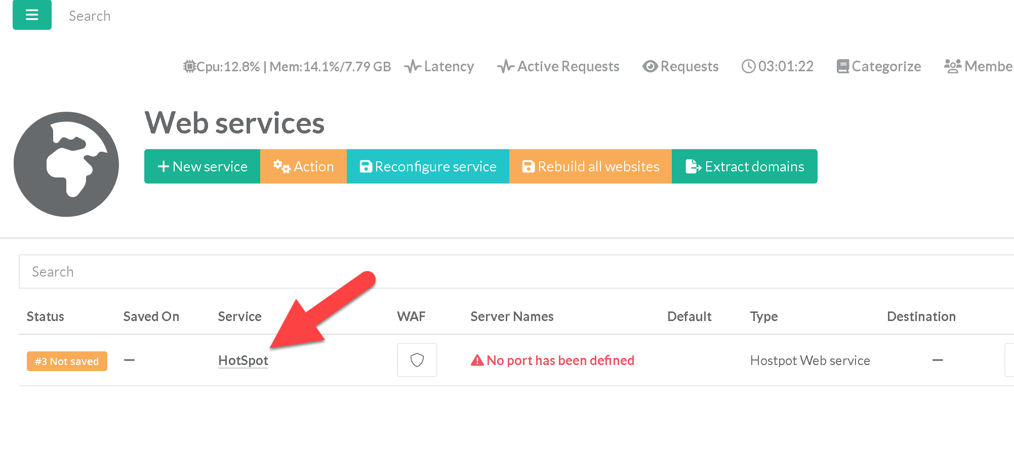 Click on the service name link.