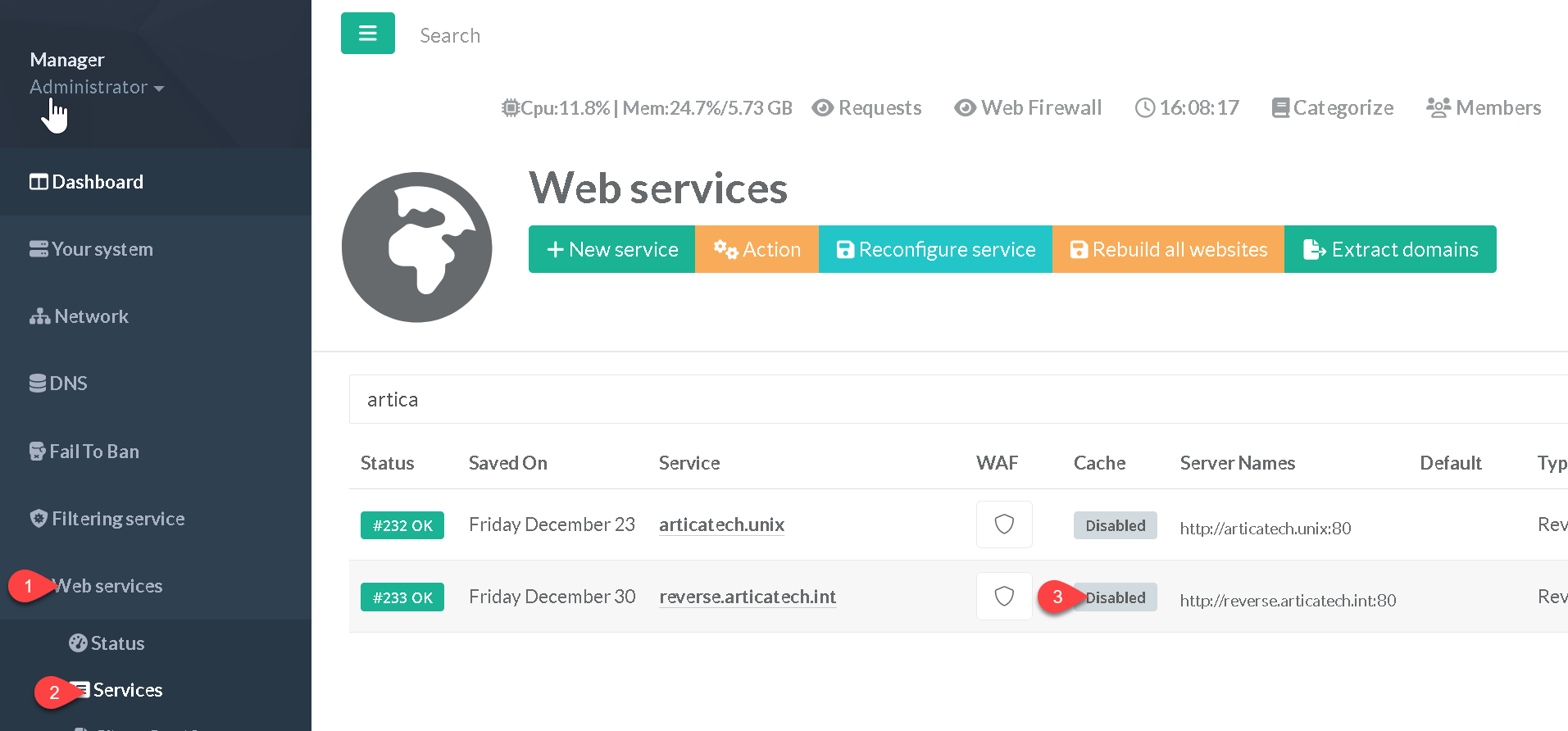The use of the cache makes it possible to drastically reduce the performance requirements of the Web engines because the means of generating dynamic pages are only called upon at the appropriate moment.This feature is available on Artica v4.40 service pack 25 or above