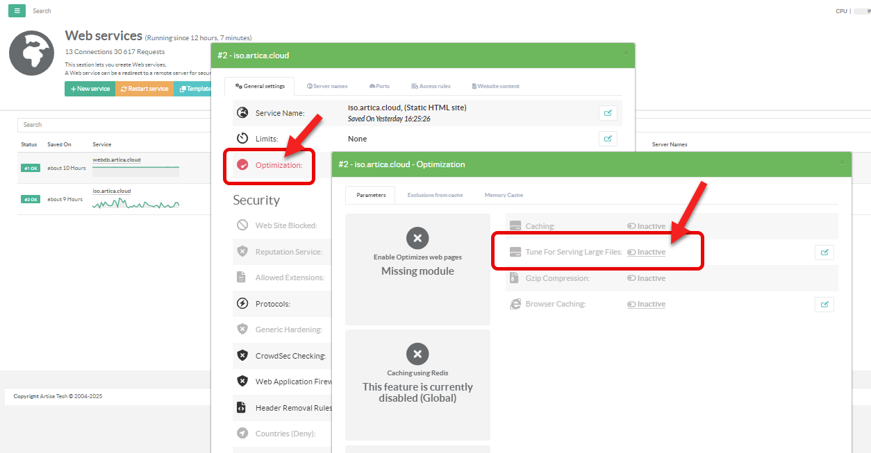 Artica is able to automatically tunes the reverse-proxy to efficiently serve large files such as ISO images, software packages, or media content.