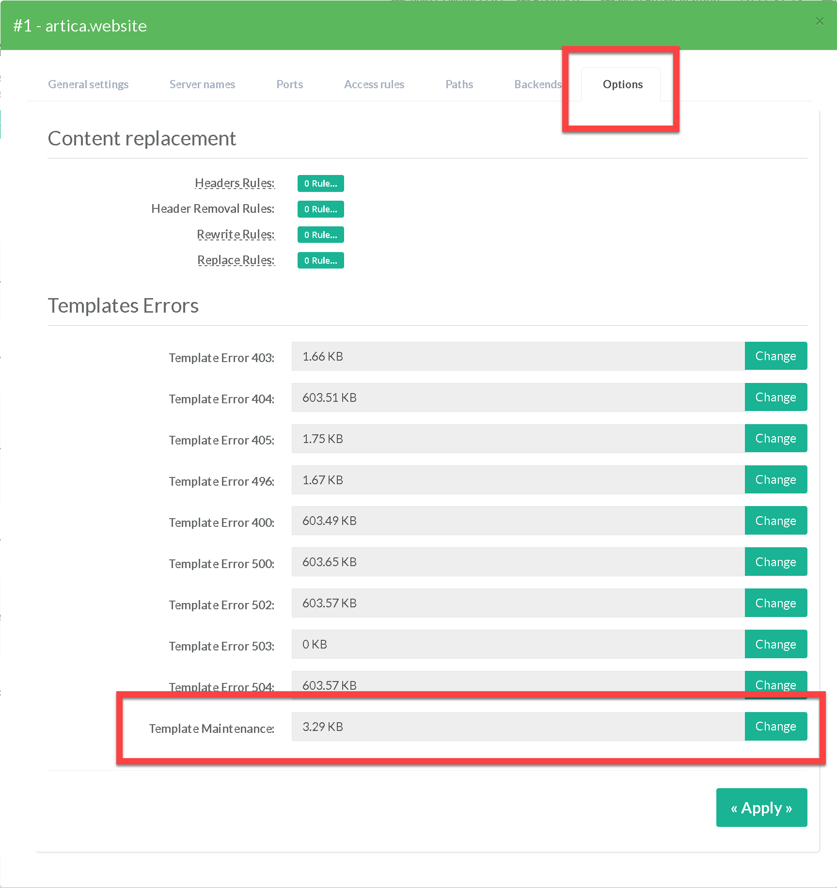 - Click on change button under Template maintenance in order to modify the HTLM code of the template.