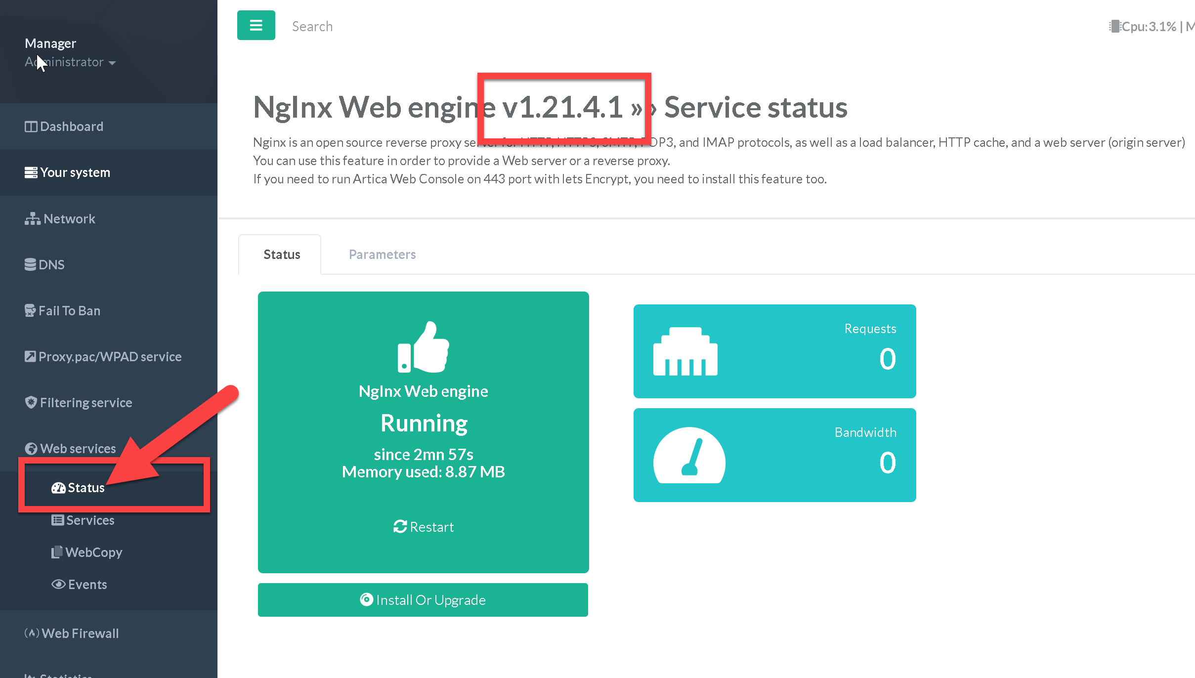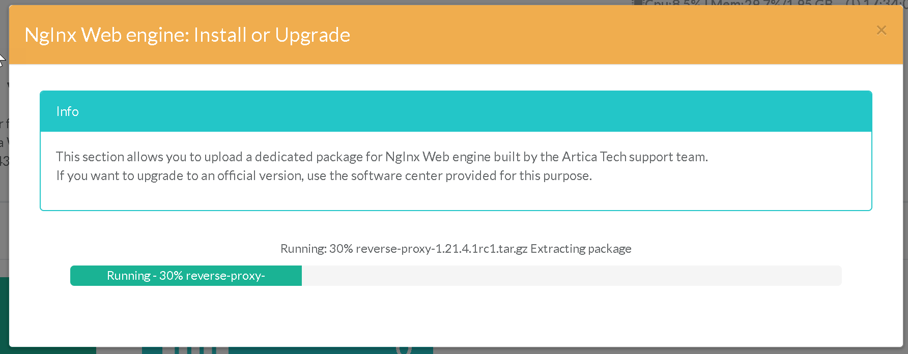 To upgrade your current reverse-proxy version, you need to use Artica 4.40 version or Artica 4.30 with an “unstable” Service Pack