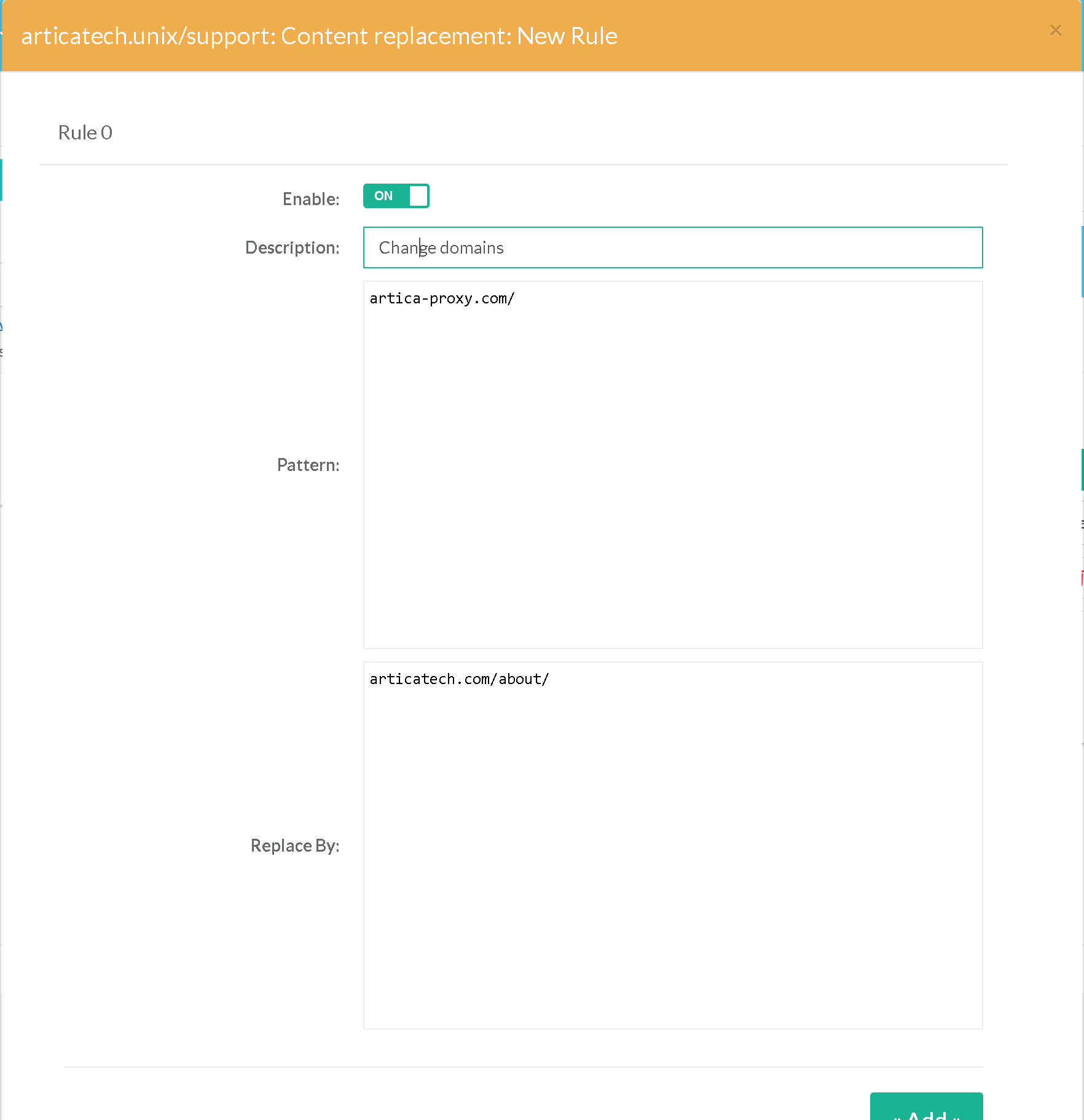 Replacement rules allow to modify strings in real time in web content pages before send to browsers.