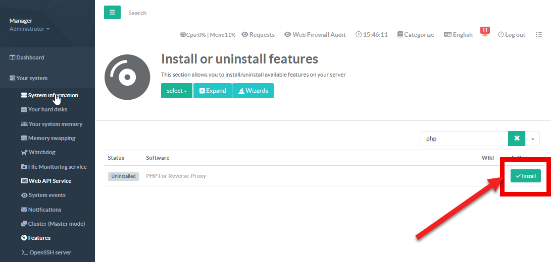 Once the libraries and binaries have been installed, you can launch the service installation operation to activate production operation.