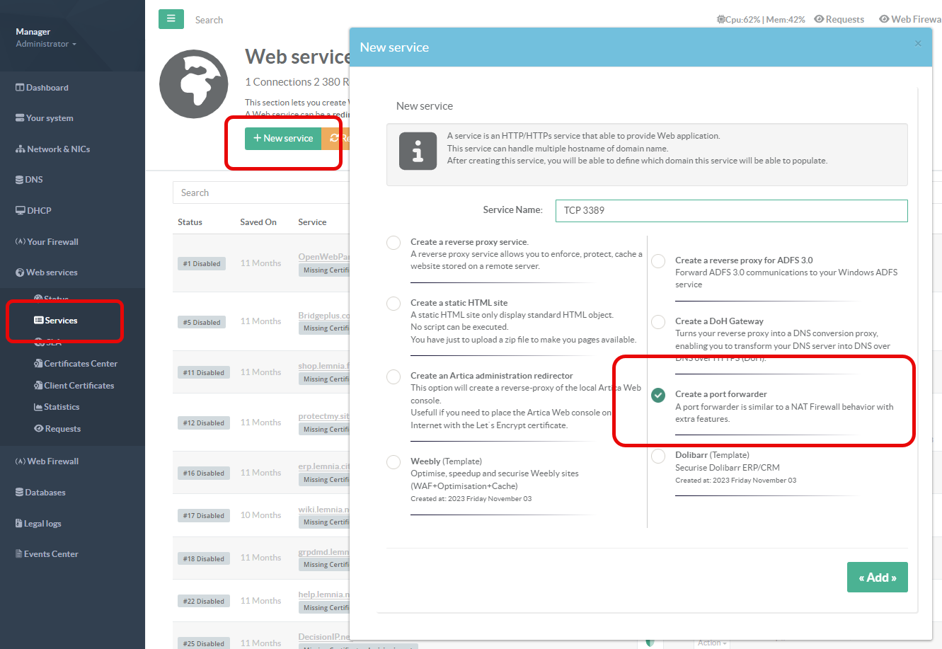 Port Forwarder in Artica lets you create and manage TCP- or UDP-forwarding rules with just a few clicks.