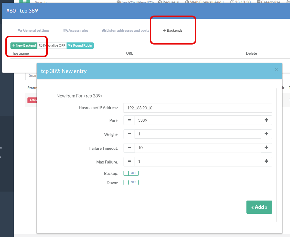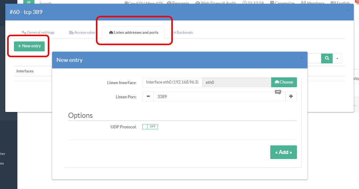 Open the Listen Addresses & Ports tab, then list every port you want the reverse proxy to expose.