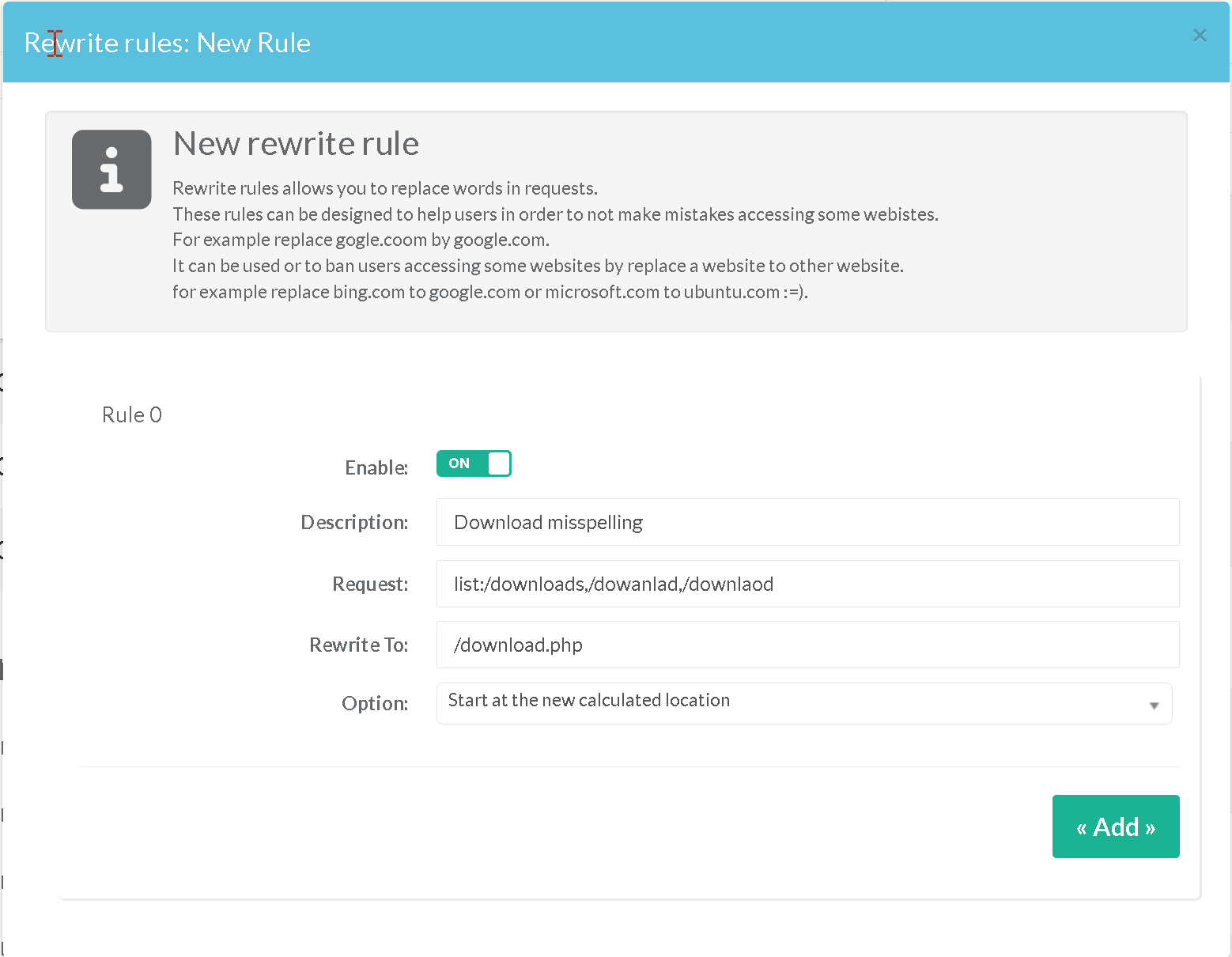 Rewrite rules modify part or all of the URL path in the user's request. usually for one of two purposes: