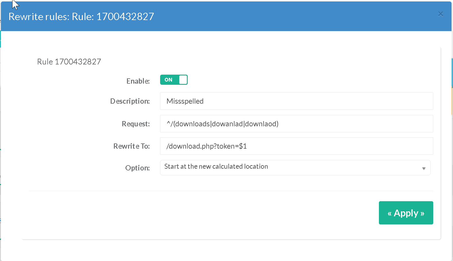 The request field expresses the request that will arrive at the reverse-proxy before being processed. This means that the path may not exist on your web server. For example, let's say that the urls /downloads, /dowanlad, /downlaod (with a bad spelling) must be understood by the real URL /download.php