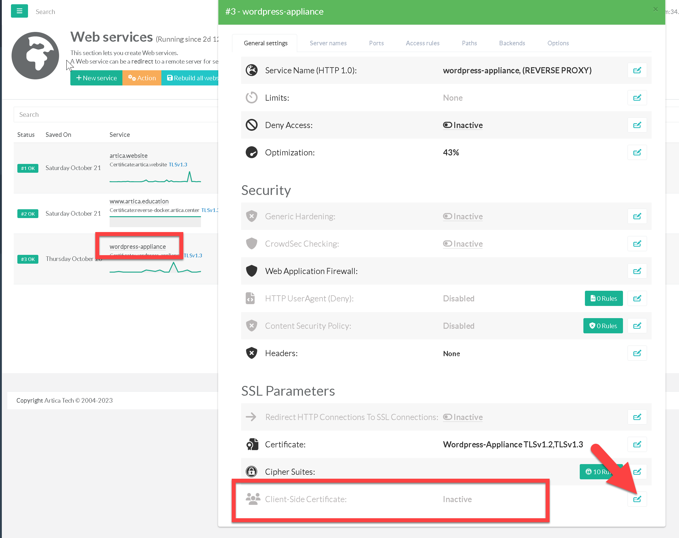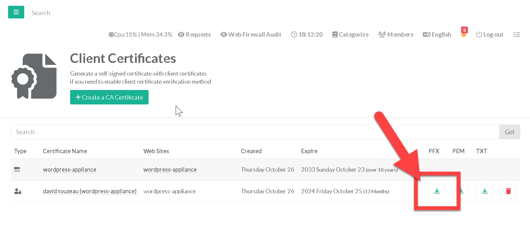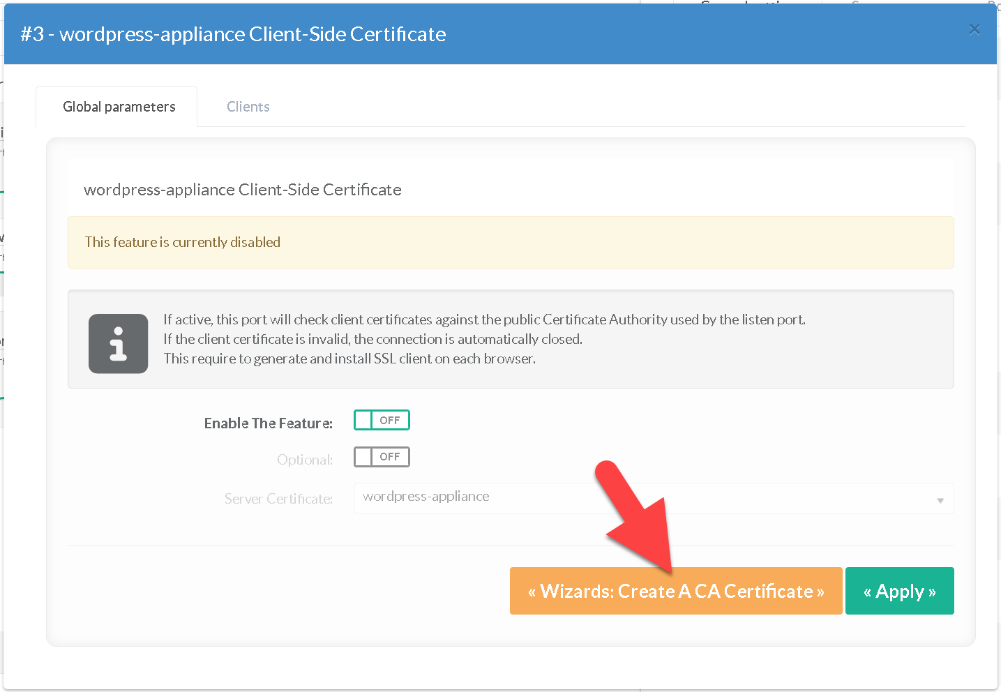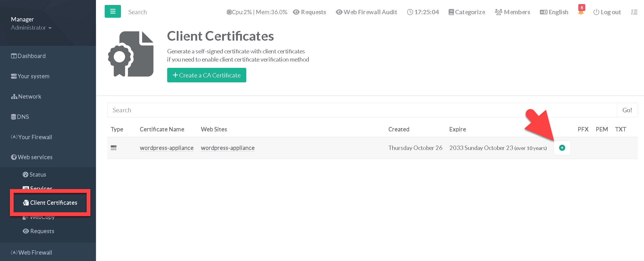 To facilitate this authentication method , Artica offers a dedicated section “Client Certificates” in the left-hand menu.