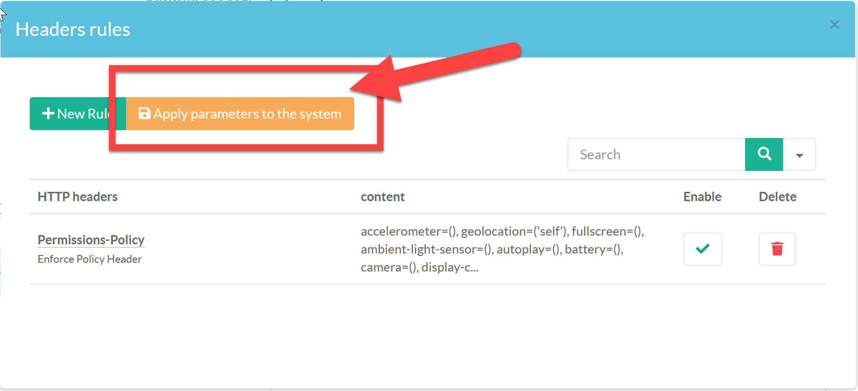 After finish, click on “Apply parameters to the system” button to make header in production mode