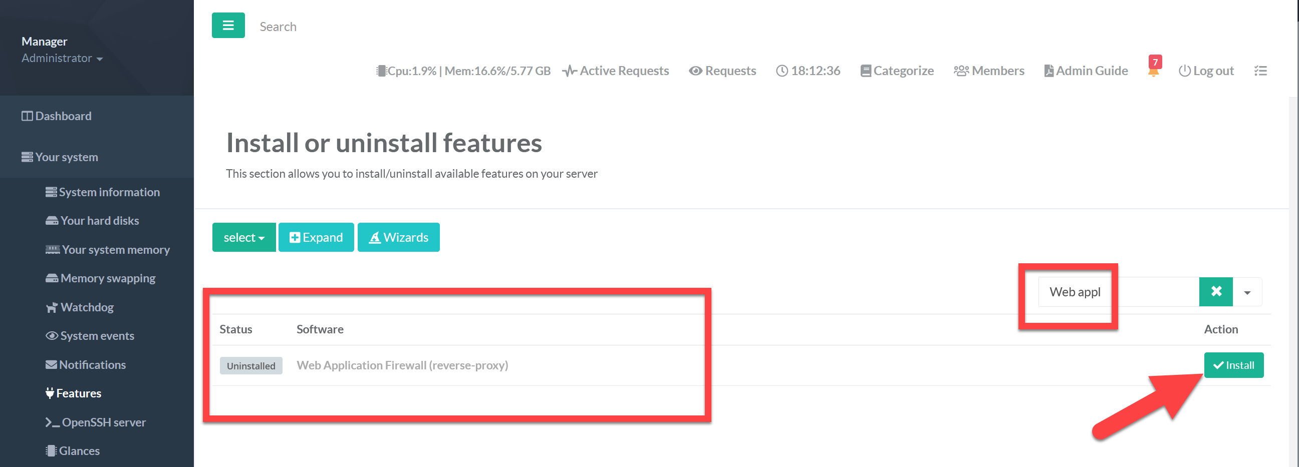 Even if the feature is installed, your websites are not yet protected, you must specify which websites you want to activate with the WAF module